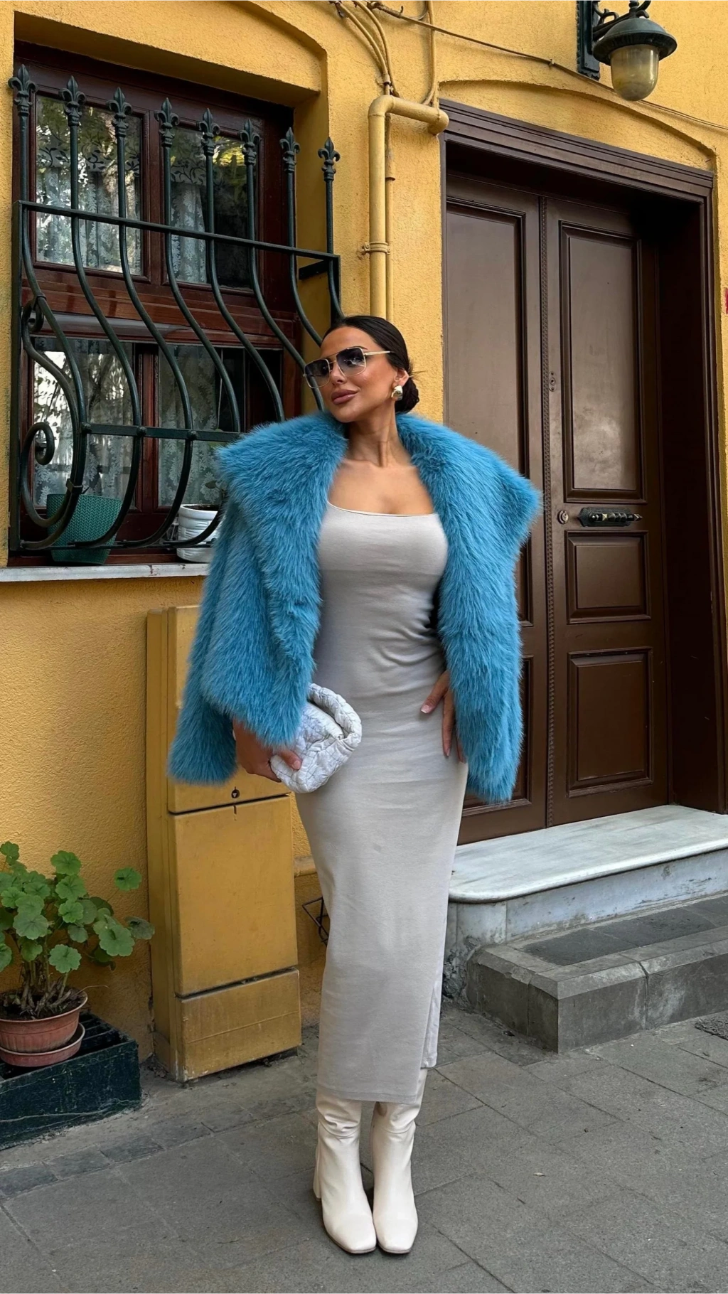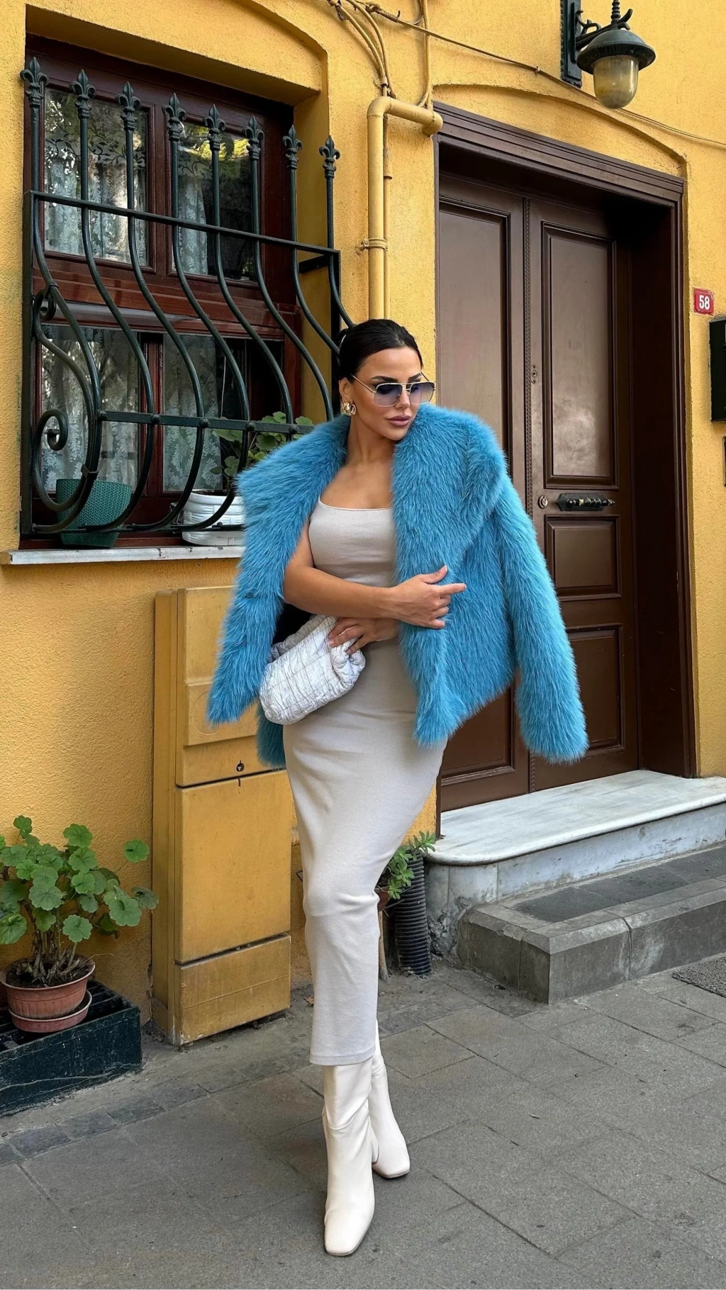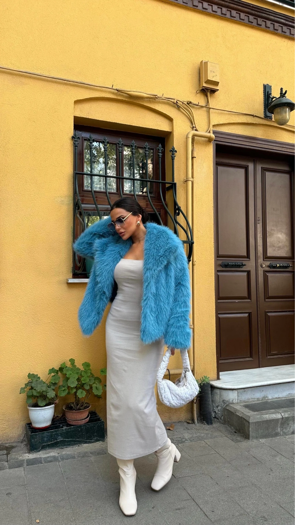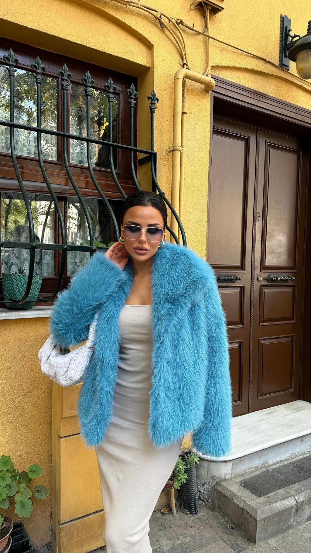 Beyaz Ceket Yaka Kürk Kaban
