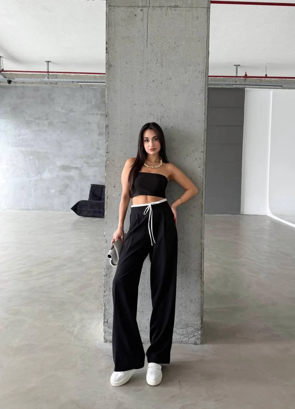 Siyah Önden Bağlamalı Dabıl Kumaş Jogger