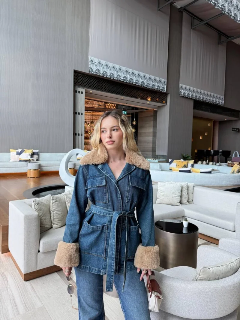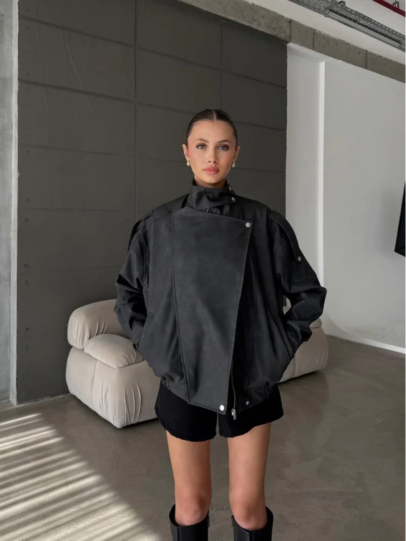 Gri Kemerli Deri Yeni Ceket