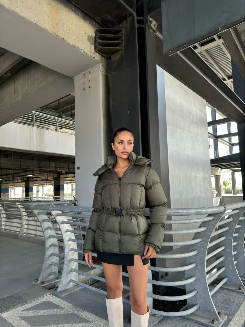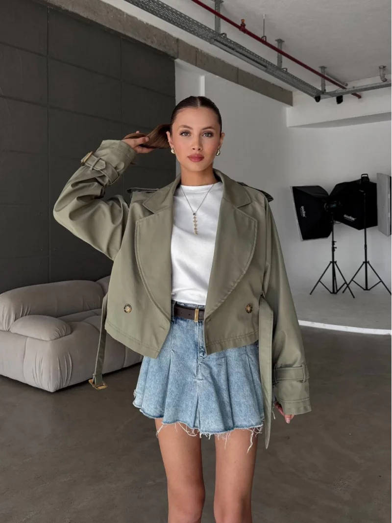 Haki Kemerli Deri Yeni Ceket
