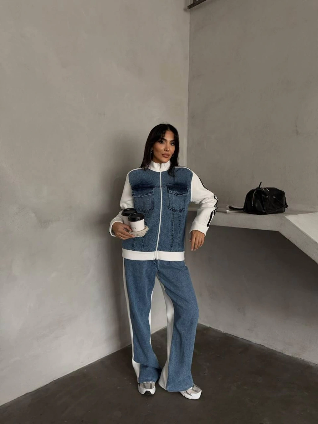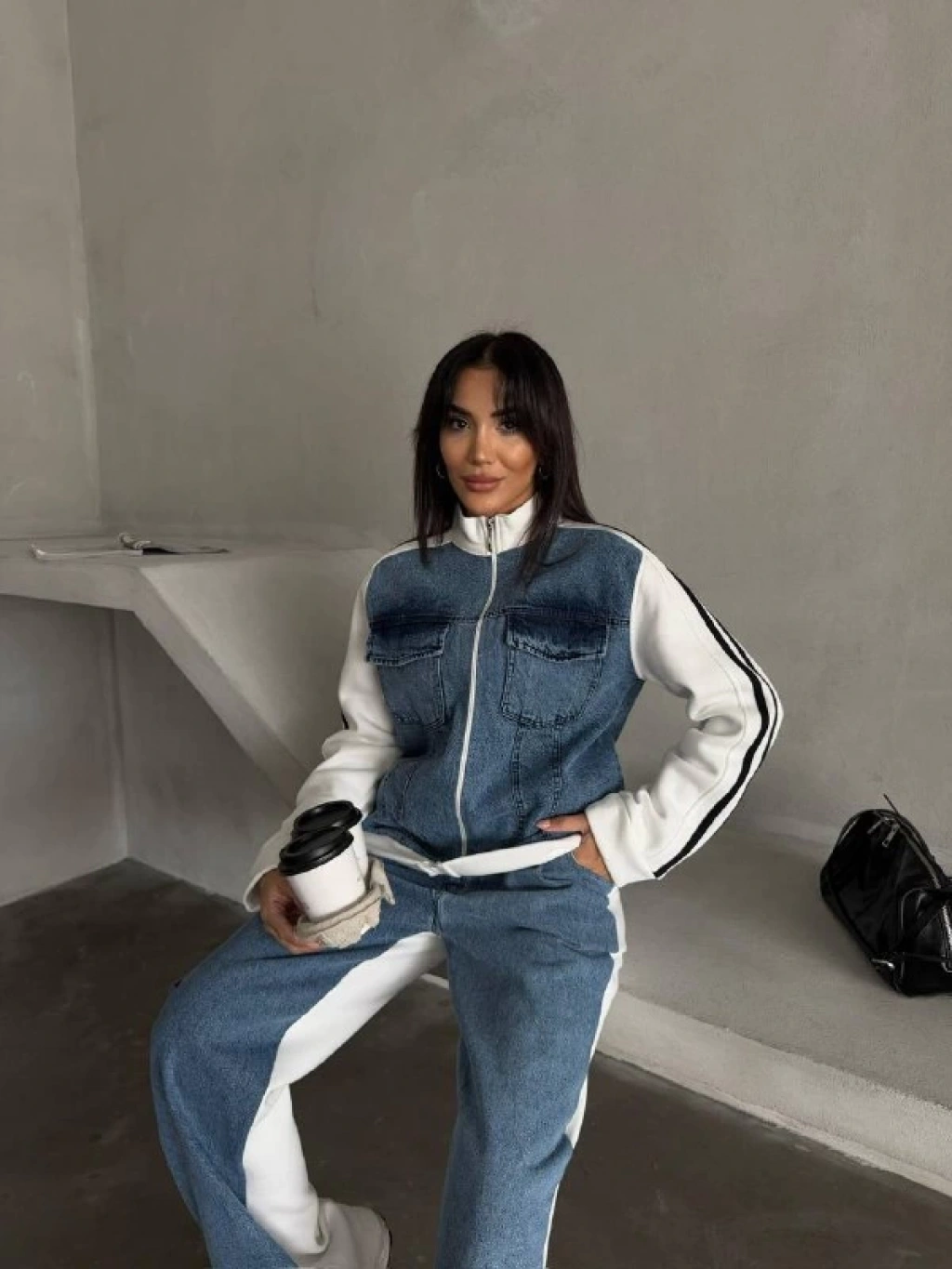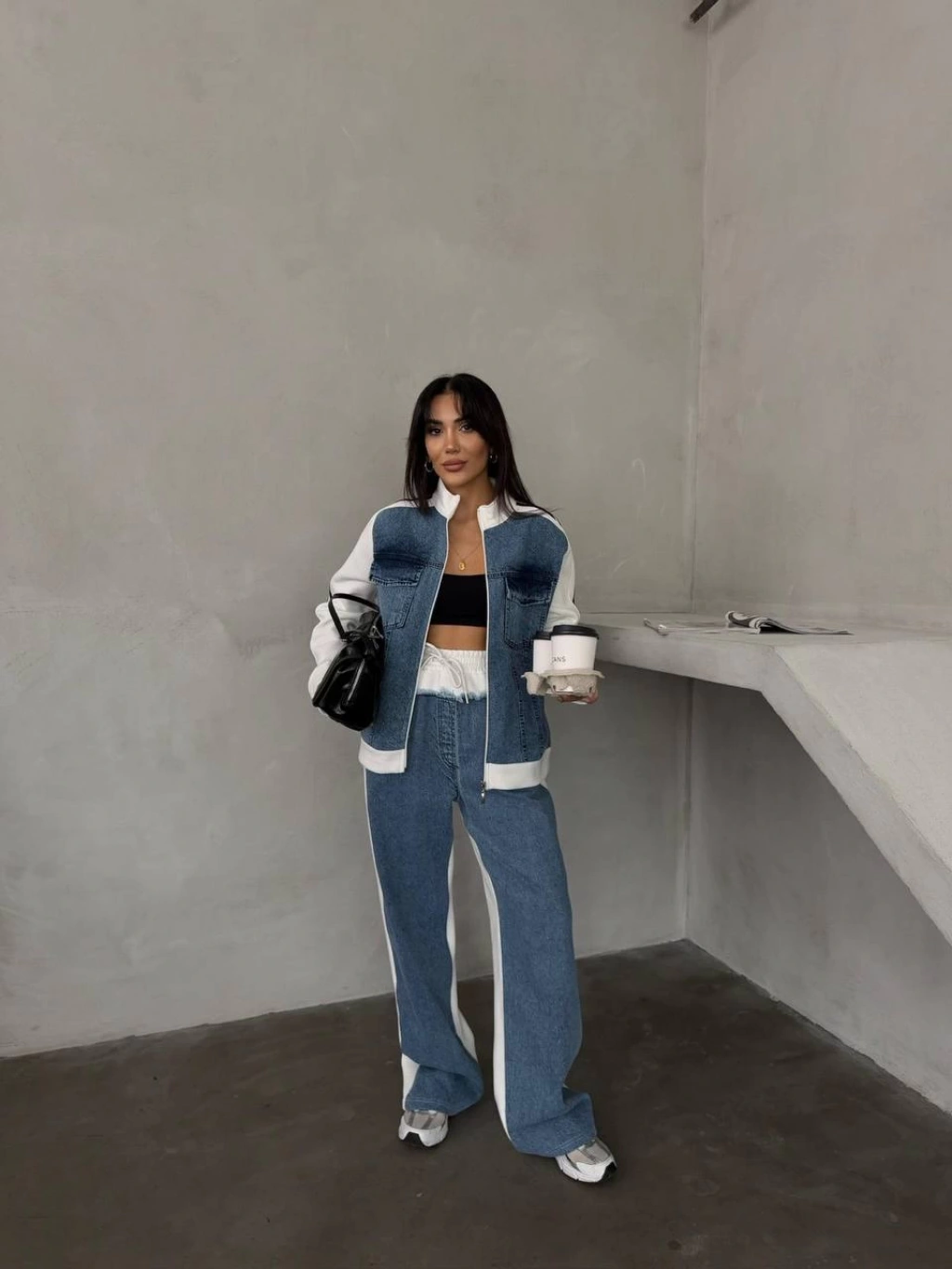 Buz Mavi İspanyol Paça Yelekli Denim Takım