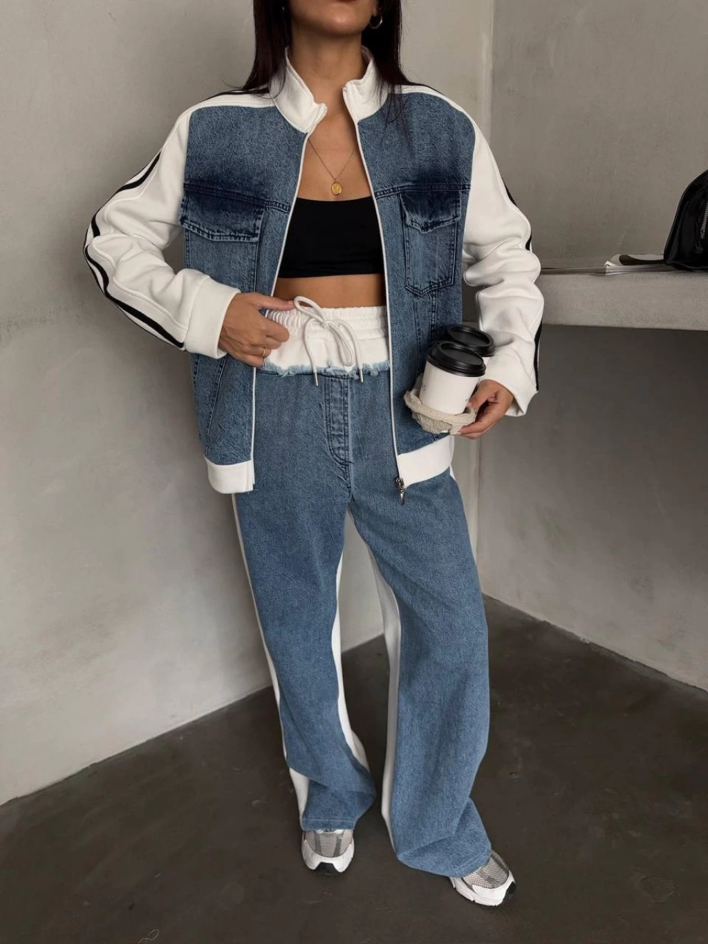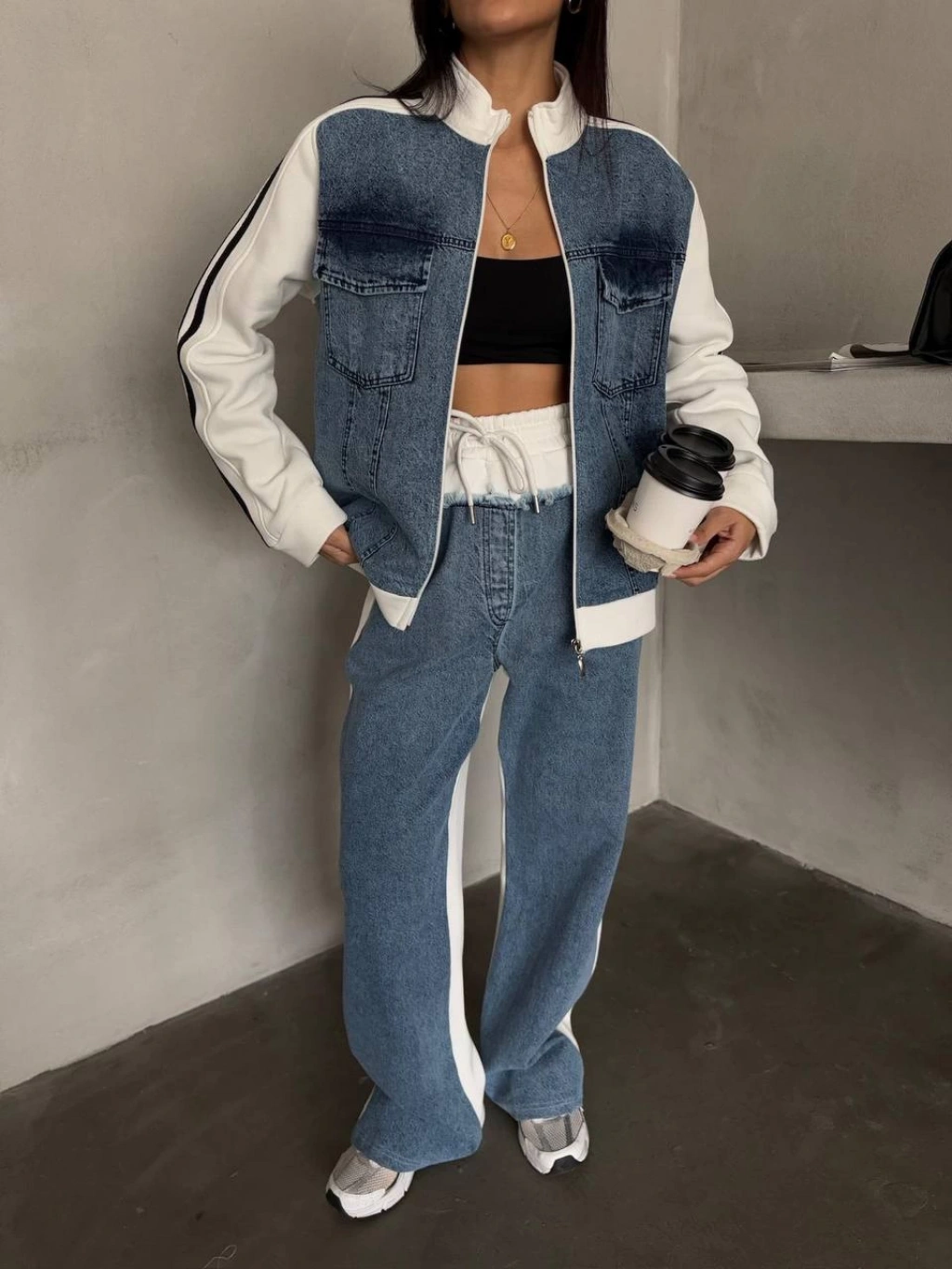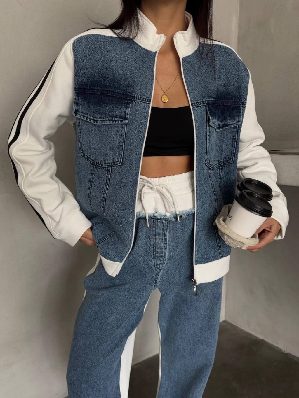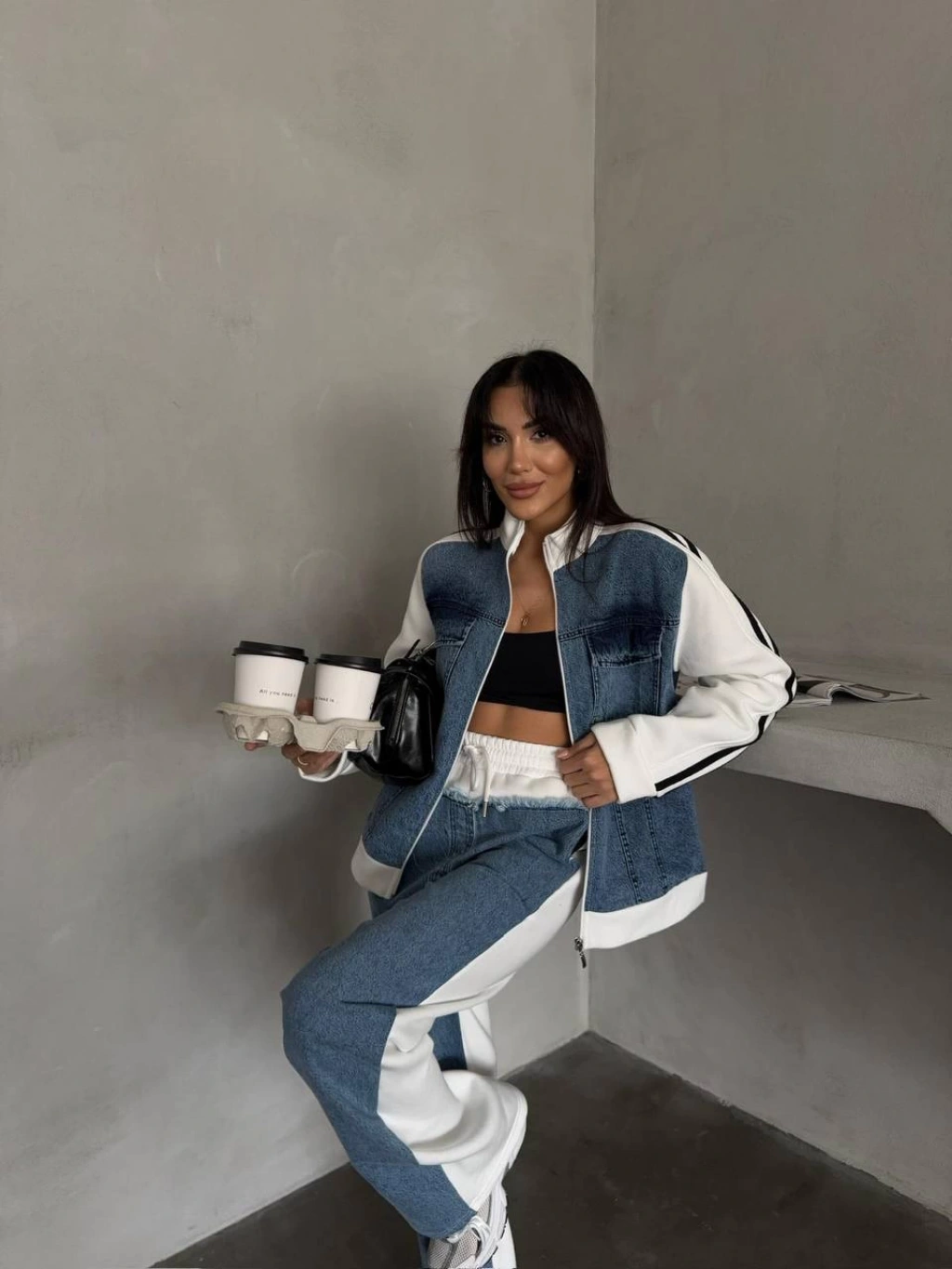 Buz Mavi İspanyol Paça Yelekli Denim Takım