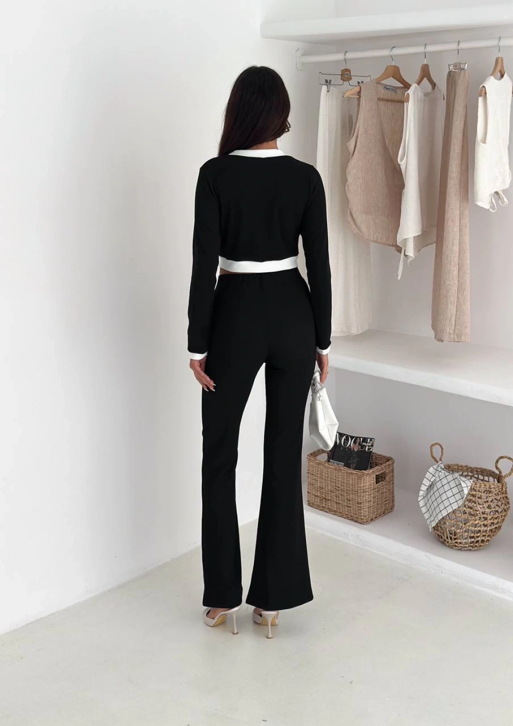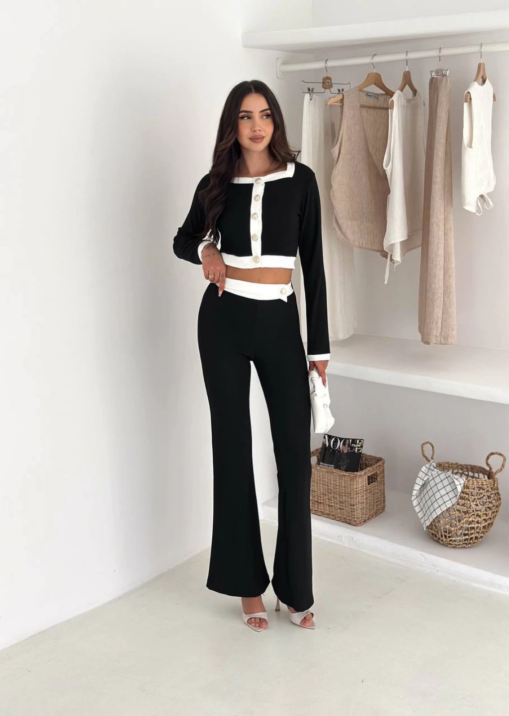 Siyah Palazzo Crop İkili Takım
