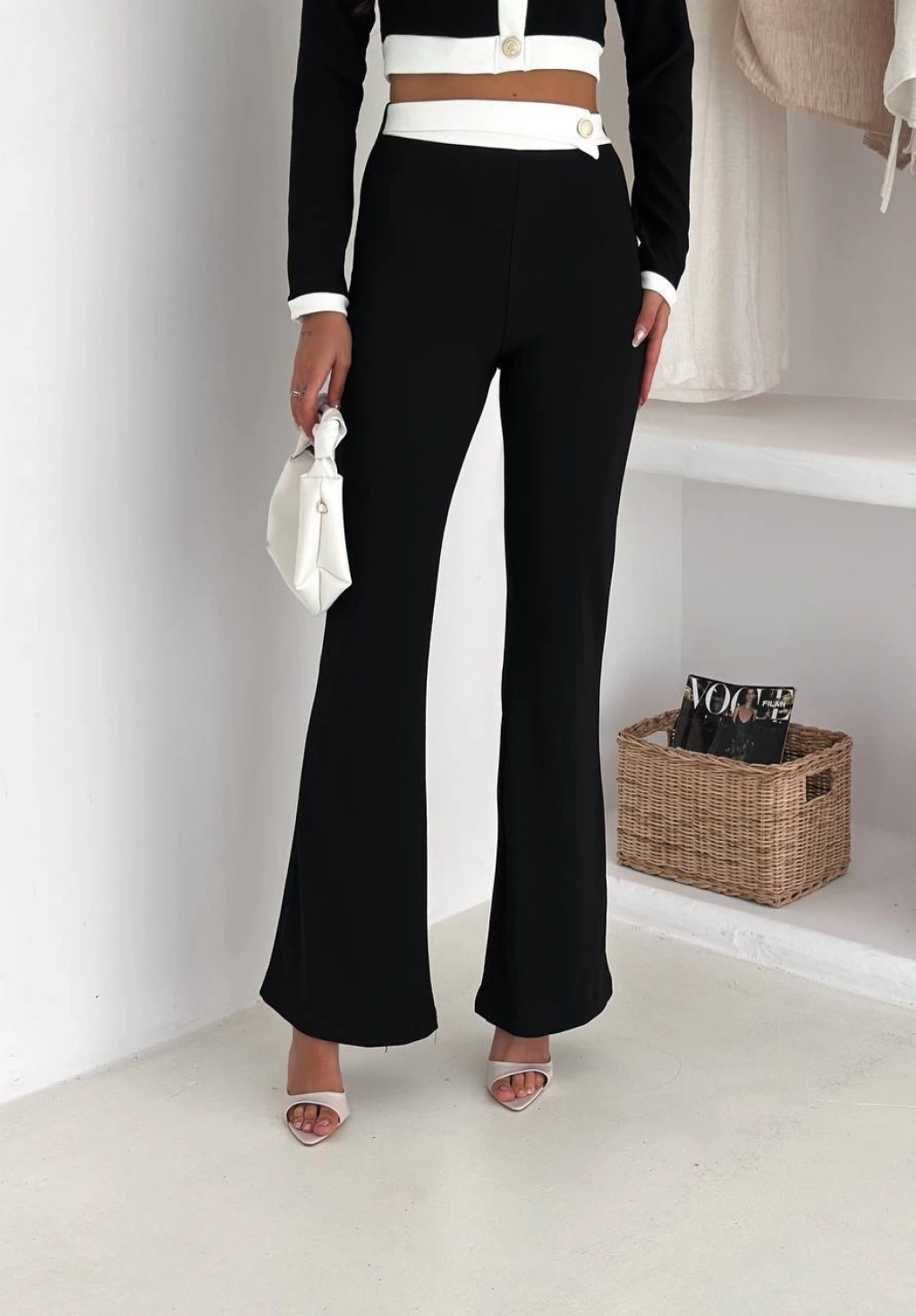Beyaz Palazzo Crop İkili Takım