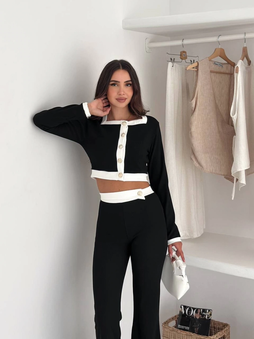 Siyah Oysho Modal İkili Crop Takım