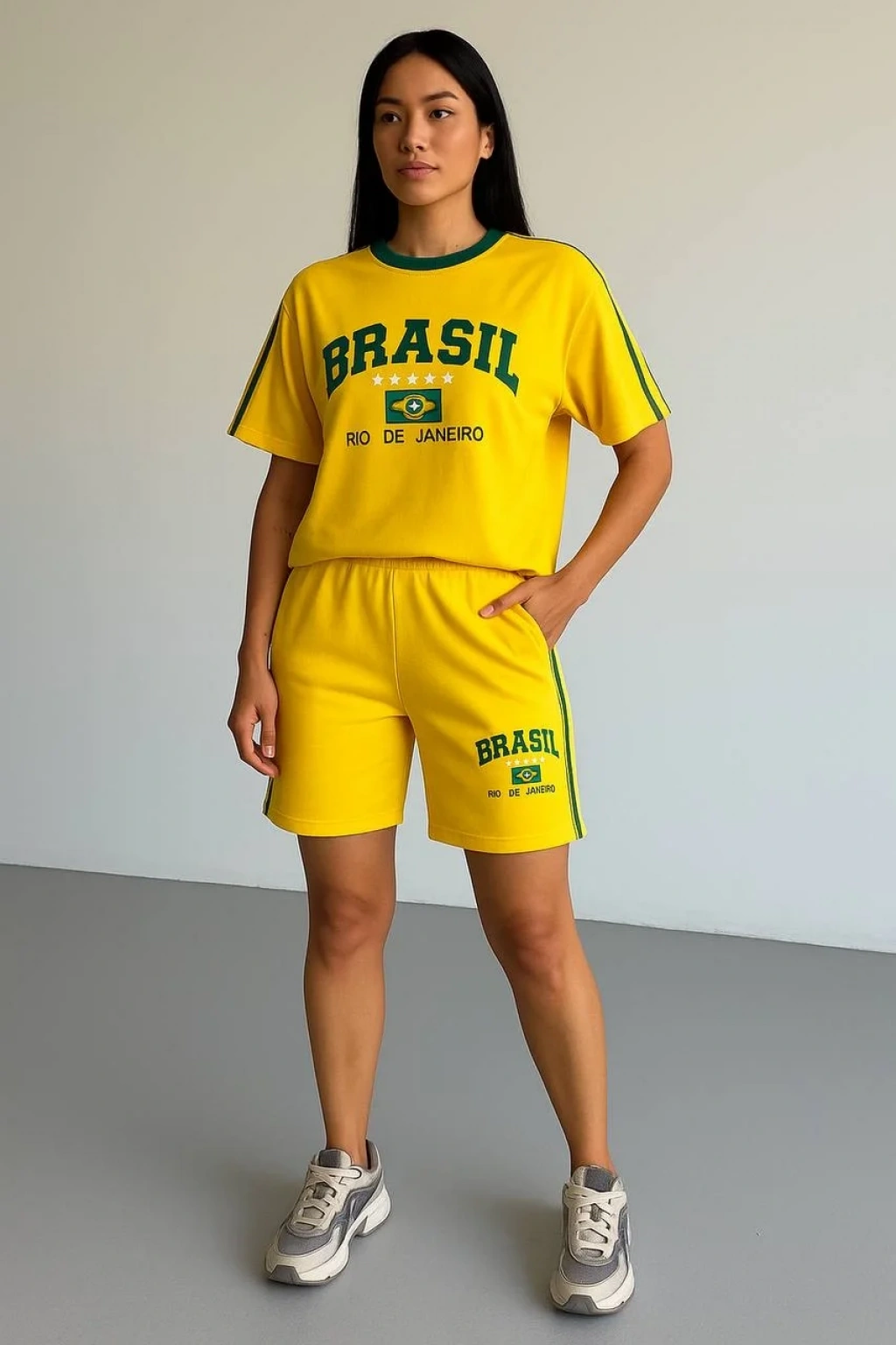 Sarı Brasil Oversize Unisex Şortlu Takım