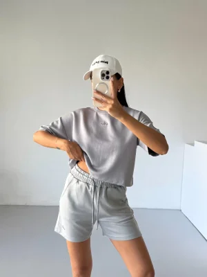 Siyah ADD Fuşya Çizgili Oversize Unisex Şortlu Takım