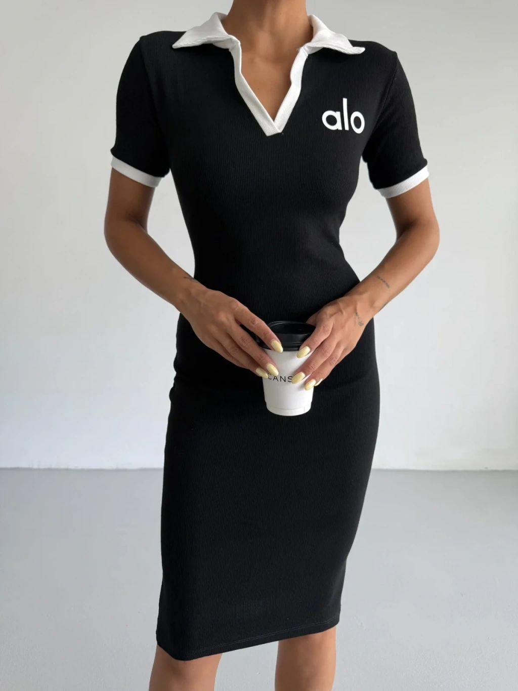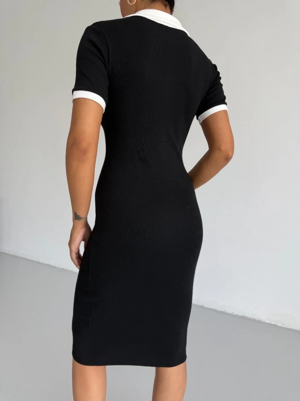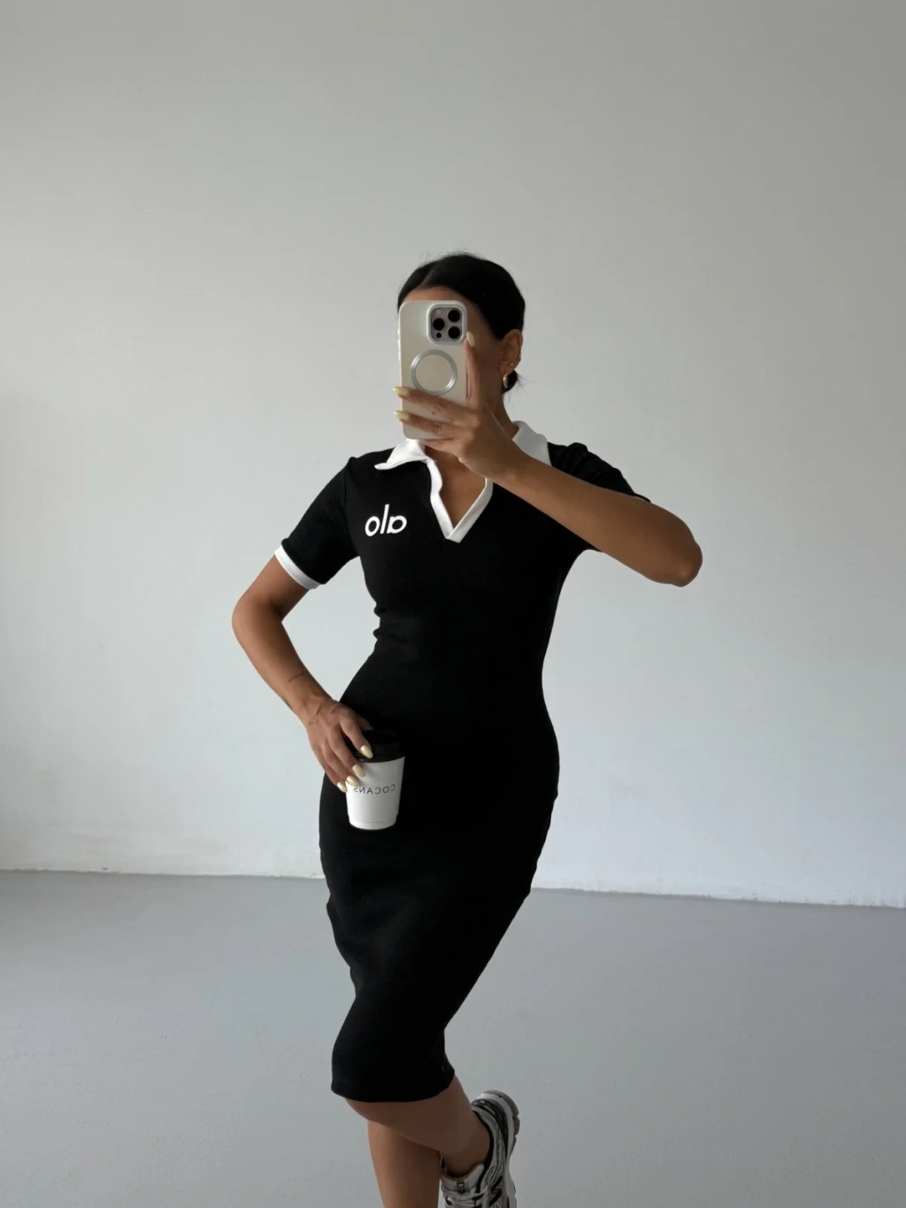 Siyah Alo Polo Yaka Likralı Kaşkorse Elbise