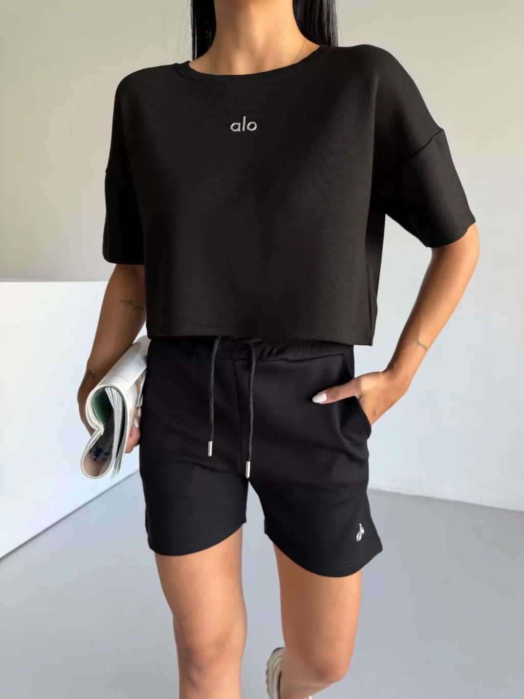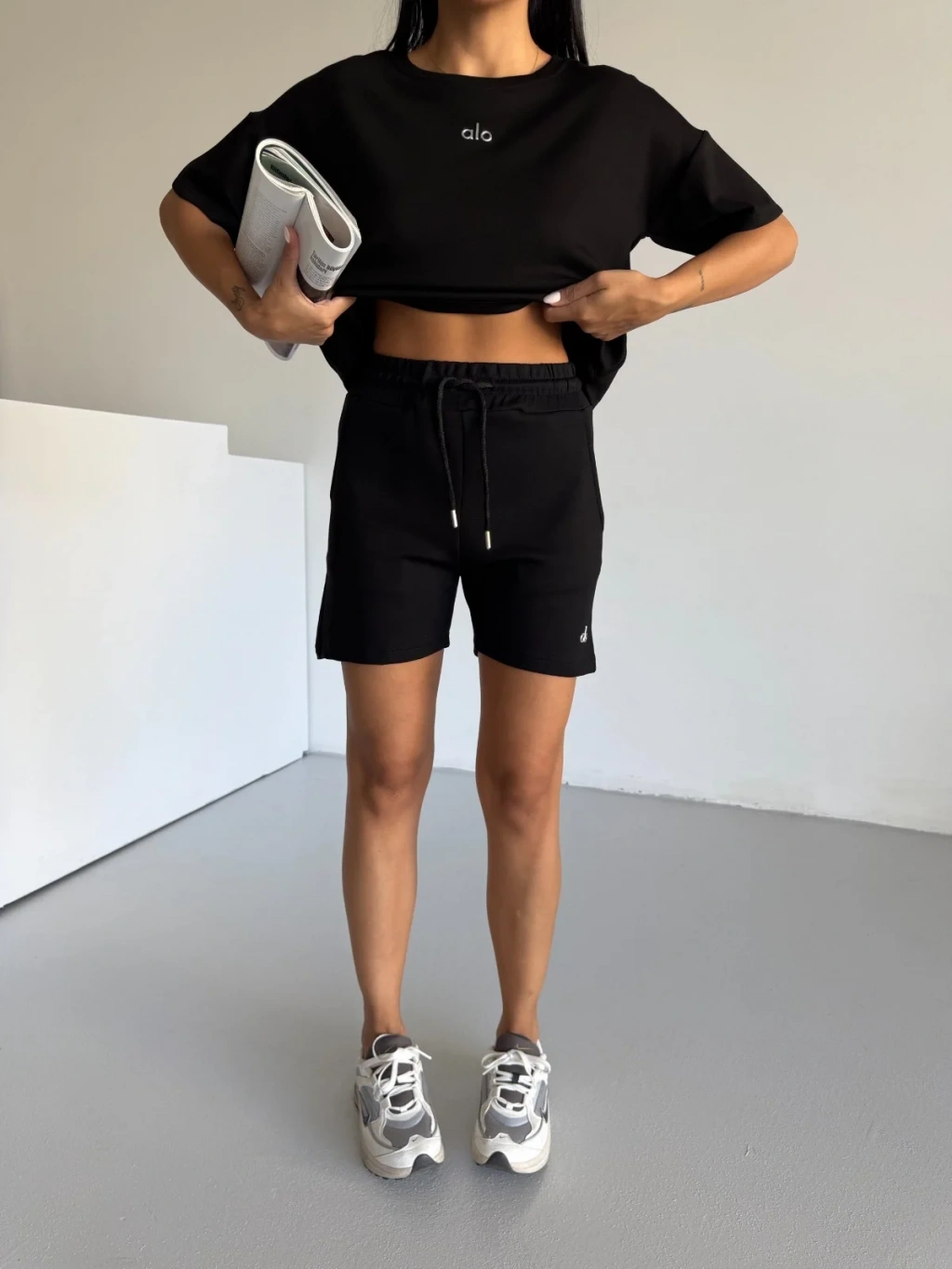 Modaskop Siyah Alo Yoga Modal Crop Şortlu Takım, şıklığı ve konforu bir arada sunar. Kombin kategorisindeki favoriler arasında yer alıyor!