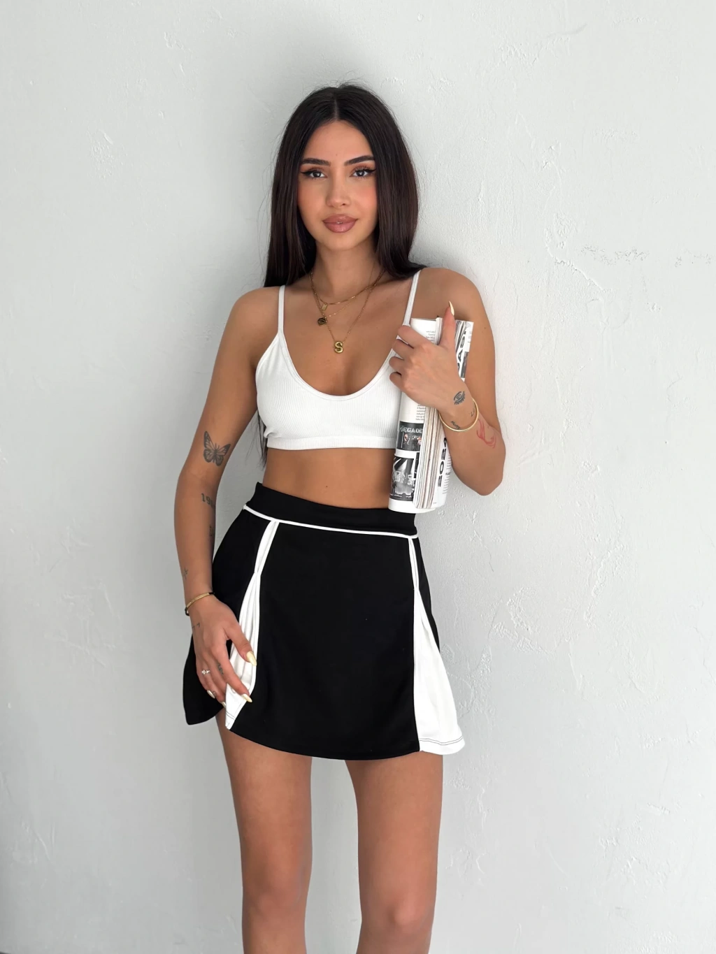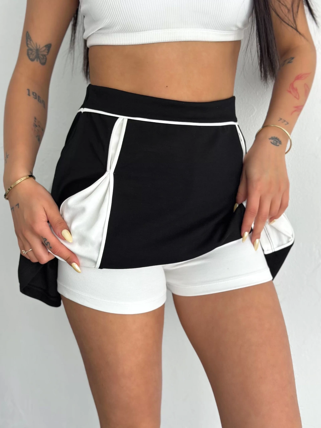 Modaskop Siyah Çift Renk Modal Şort Etek, şıklığı ve rahatlığı bir arada sunar. Her stile uyum sağlar.