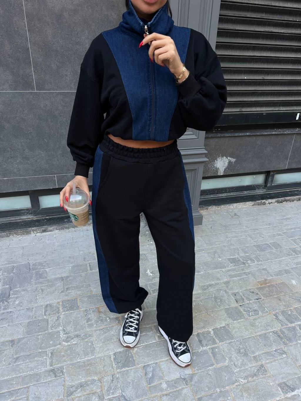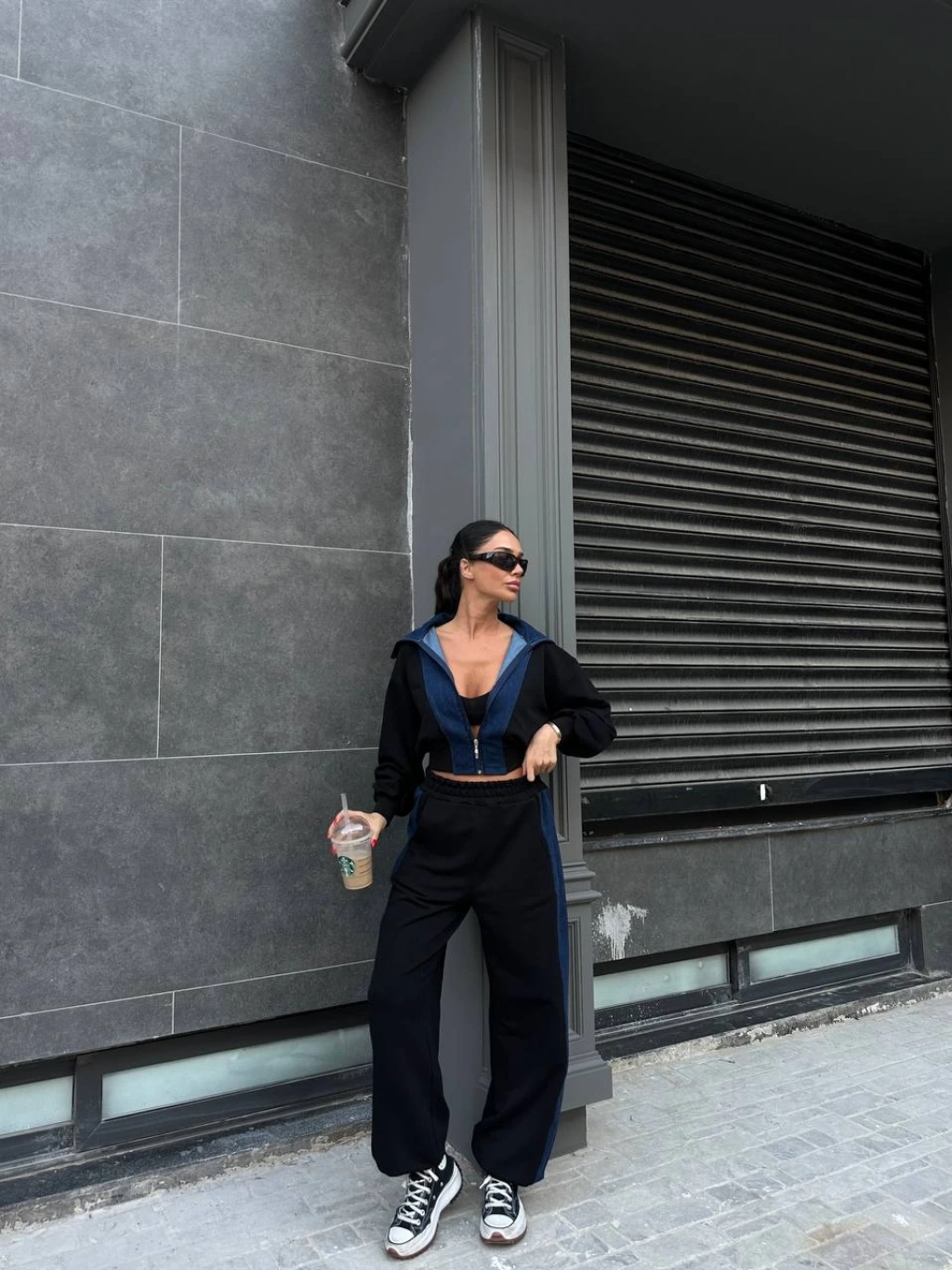 Pudra İki İplik Paça Nakışlı İkili Takım