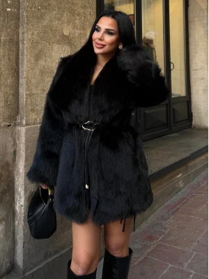 Siyah Kısa Crop Kürk