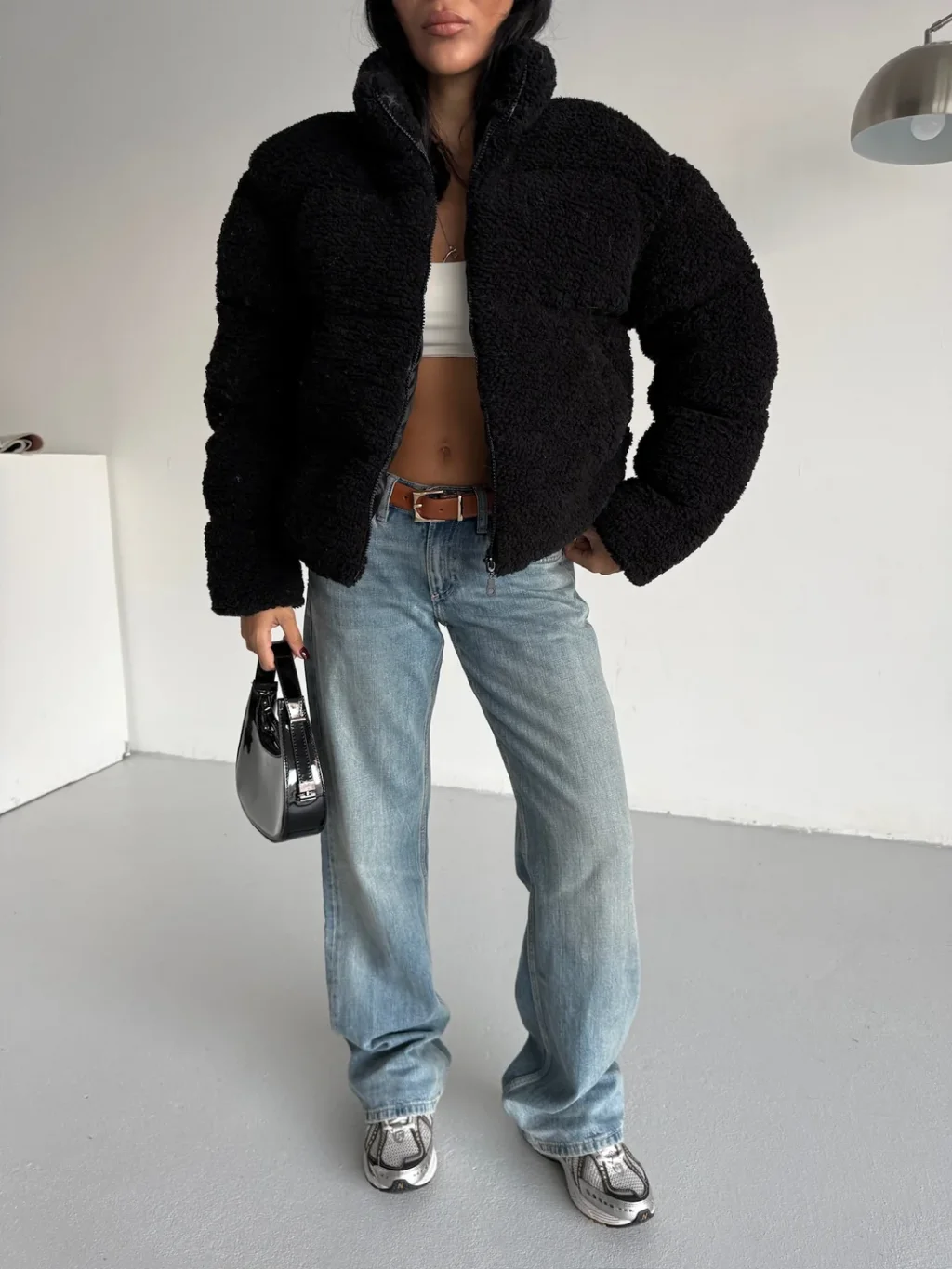 • Siyah Moderen Kuzu İçi Astarlı Coat