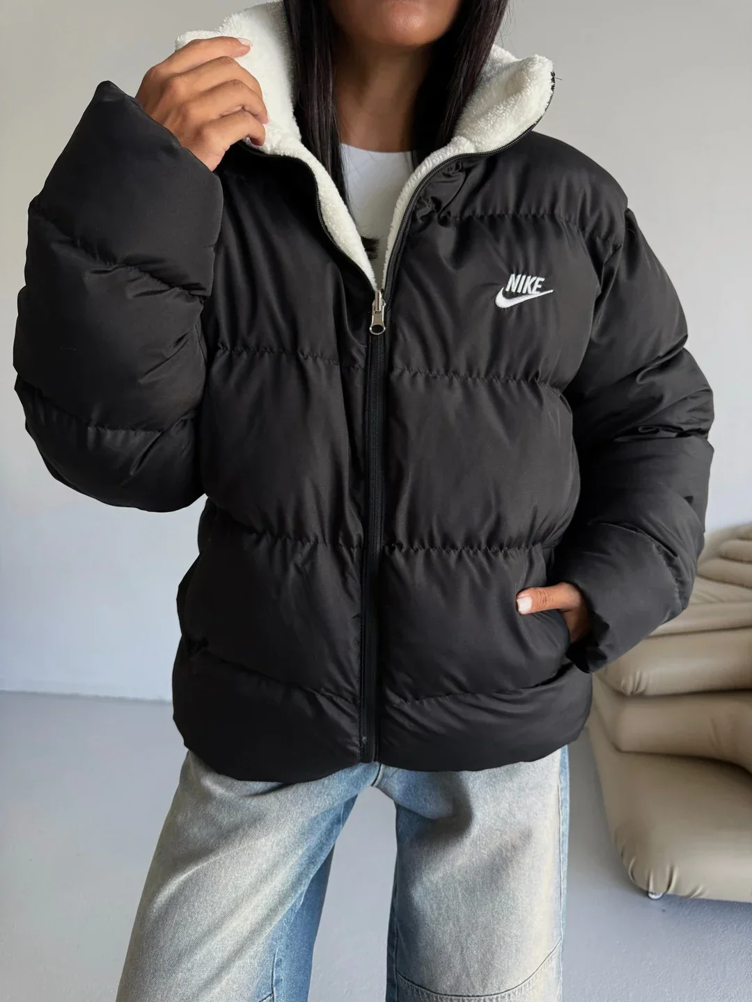 Siyah NK Oversize Unisex Çift Taraflı Mont