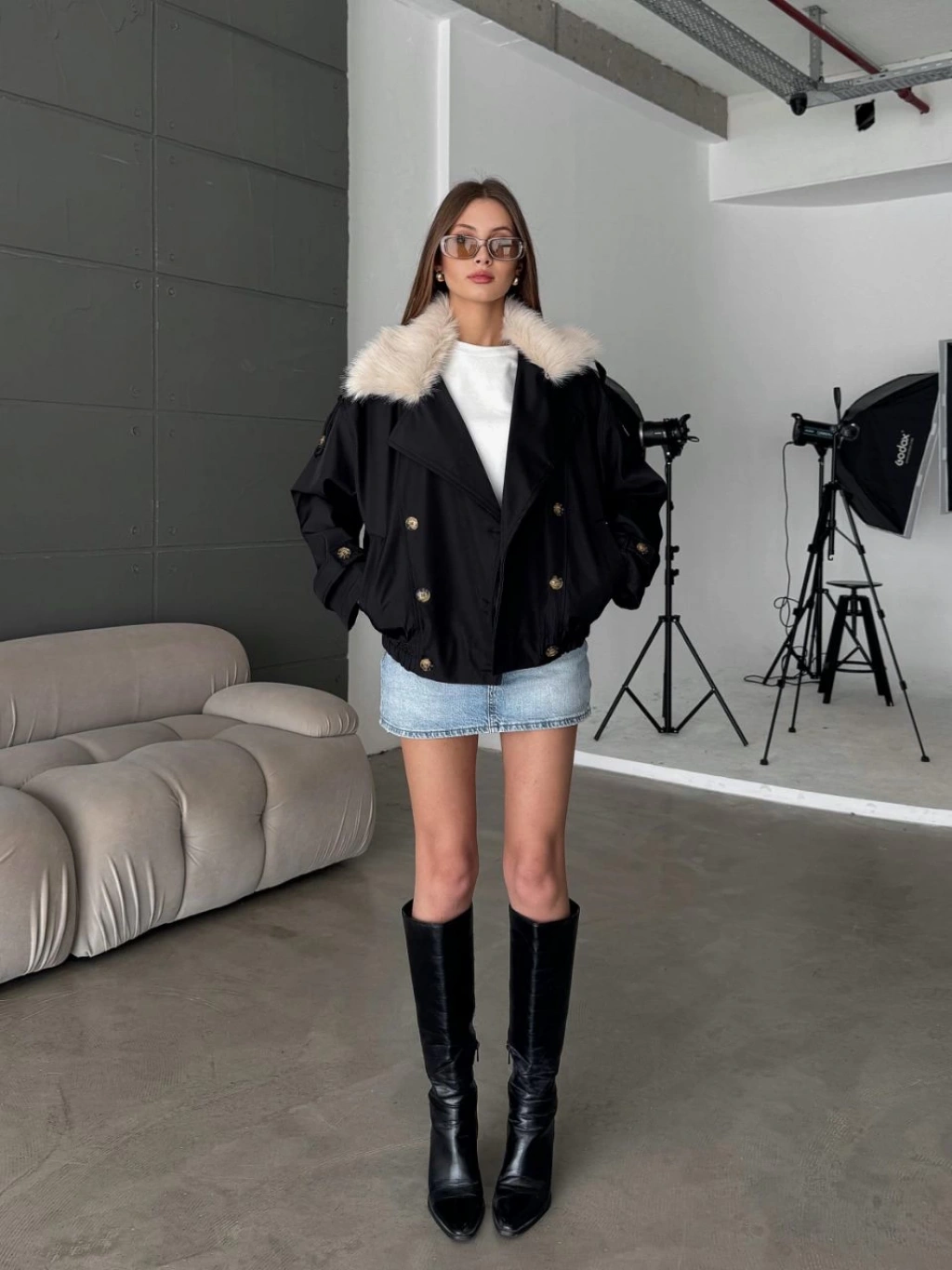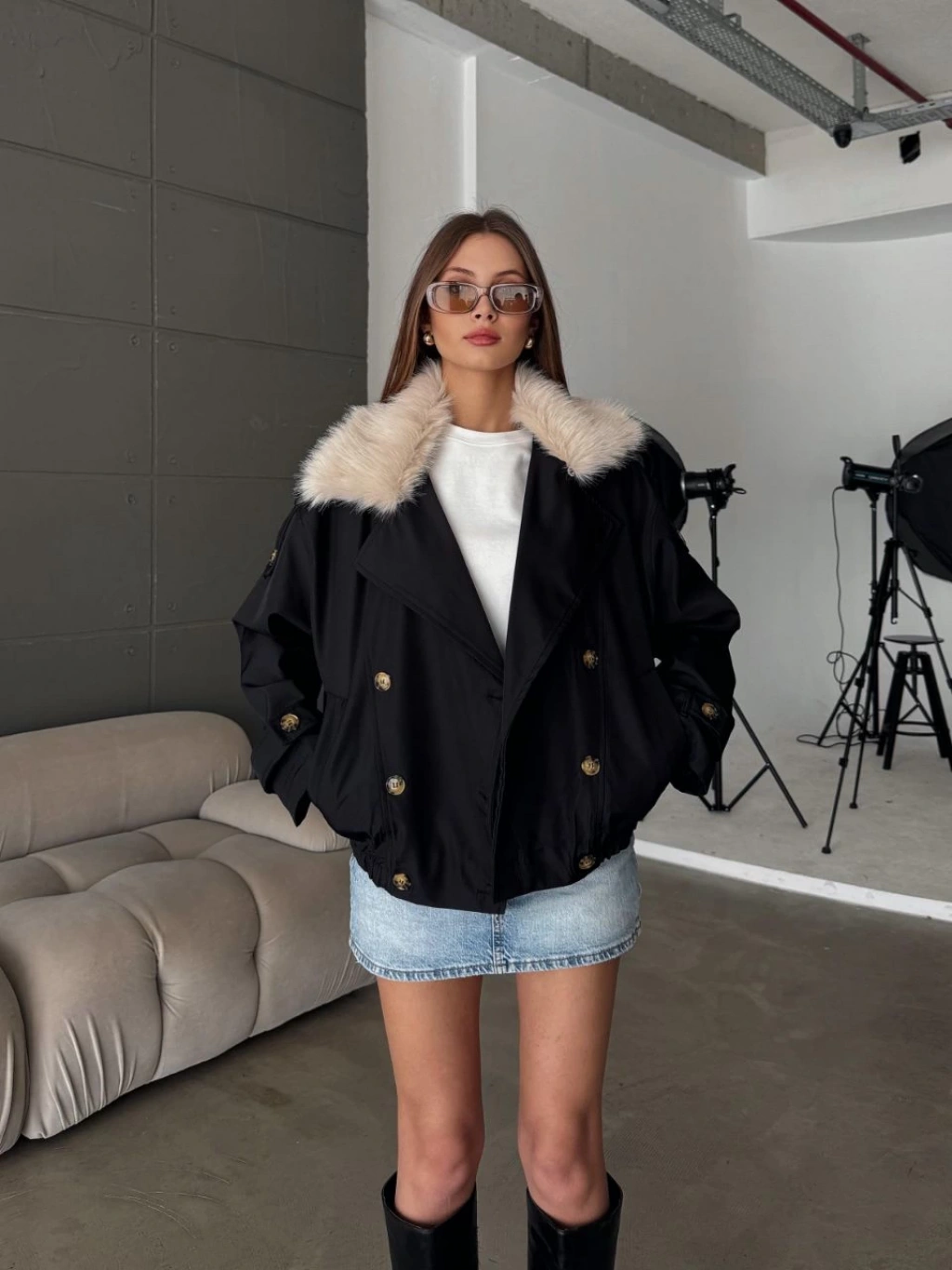 Siyah Ceket Yaka Kürk Kaban