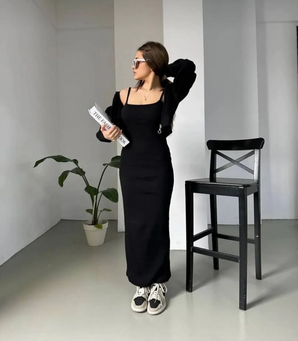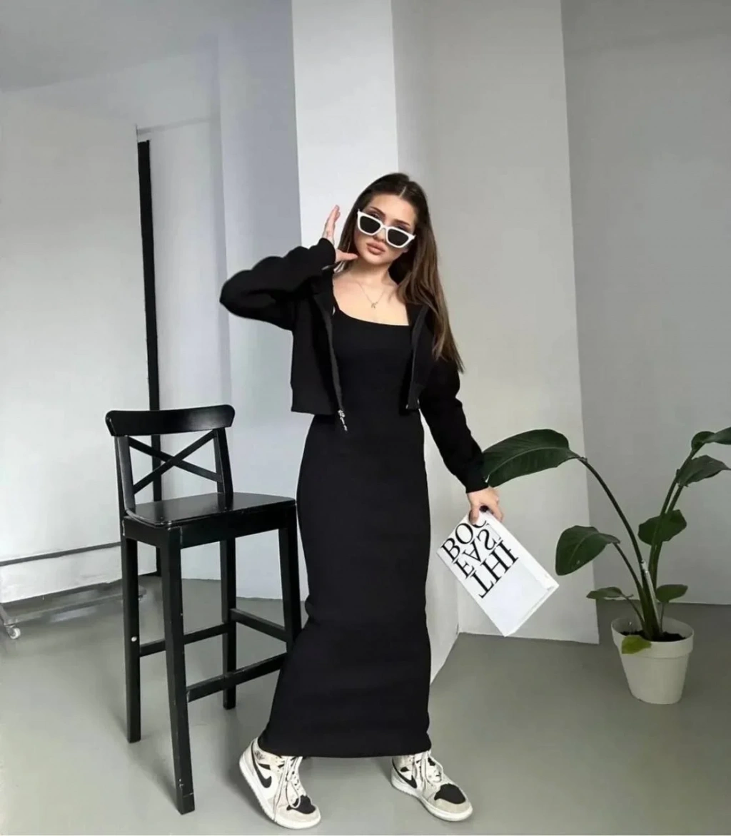 Modaskop Siyah Sweat Elbise Kombini, şıklığı ve rahatlığı bir arada sunar.
