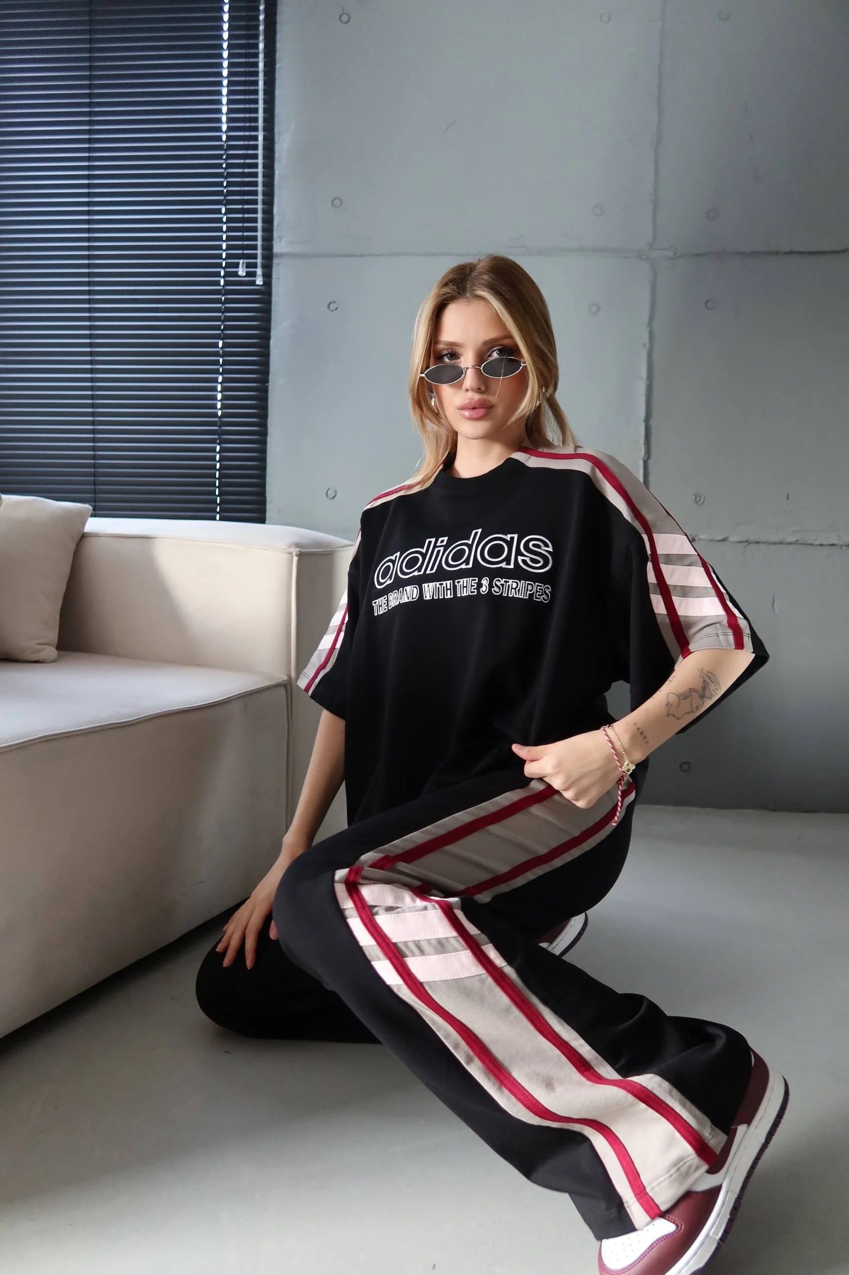 Siyah Trend City Look Şerit Detaylı Spor Kombin
