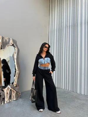 Modaskop Siyah Yıkamalı Eşofman Takımı, rahatlığı ve şıklığı bir araya getirir. Stil sahibi olmak isteyenlerin tercihi.