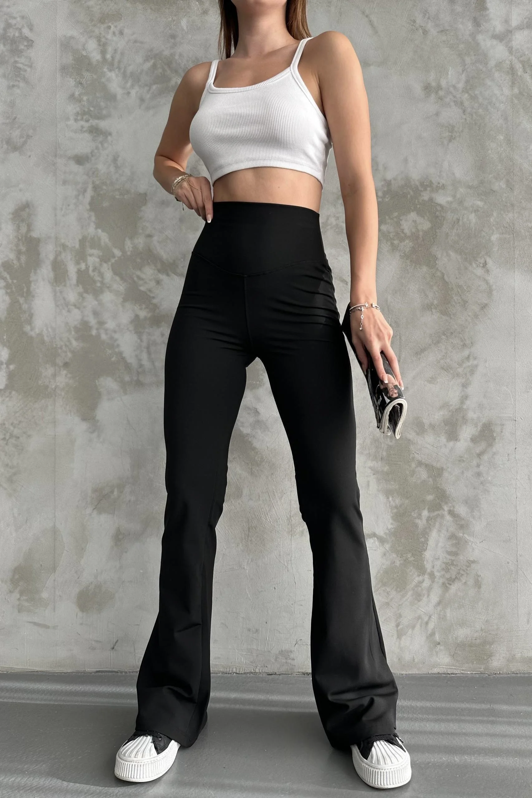 Siyah Yüksek Bel Toparlayıcı İspanyol Paça Tayt