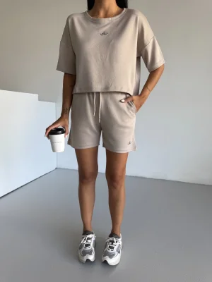 Krem Alo Yoga Modal Crop Şortlu Takım