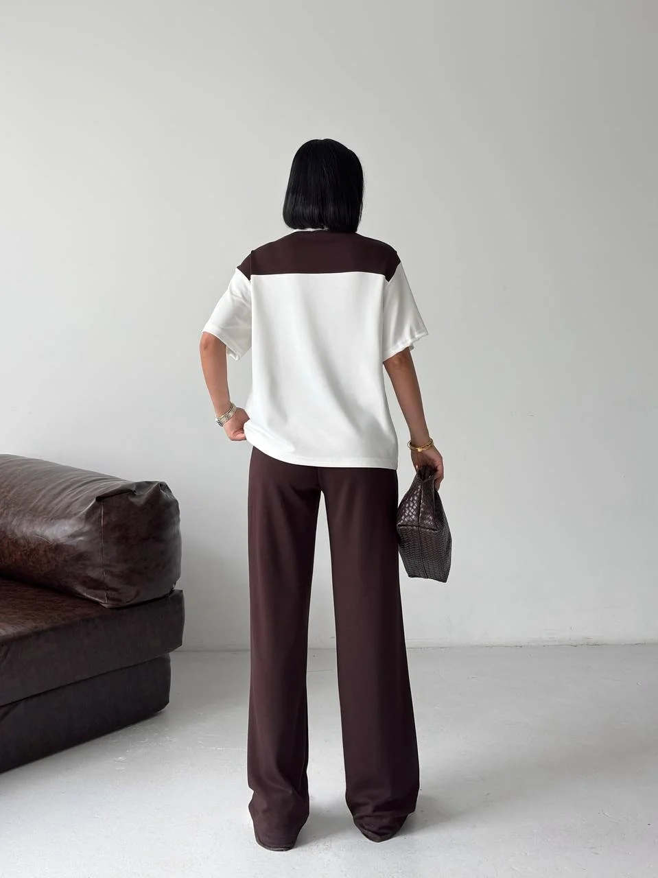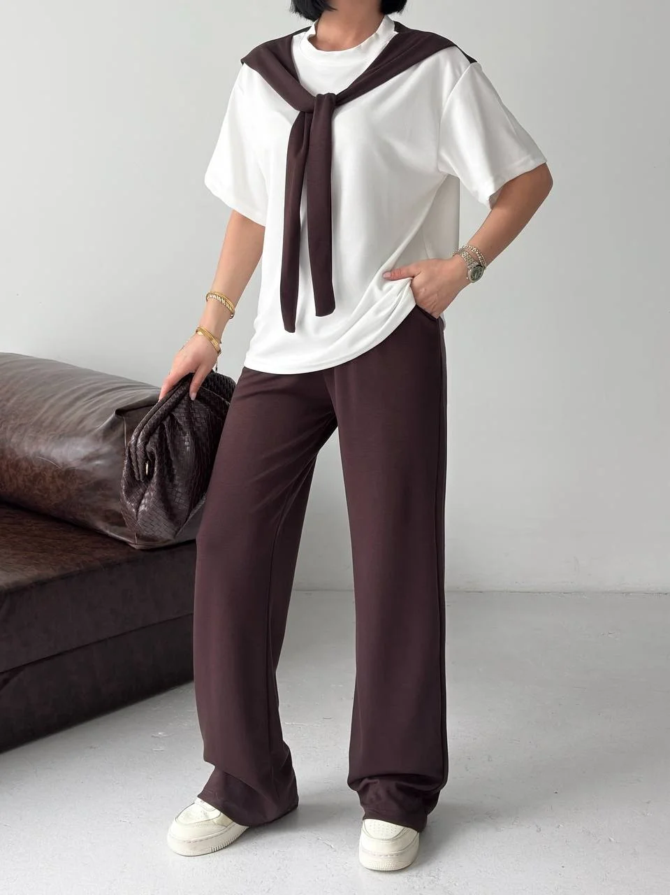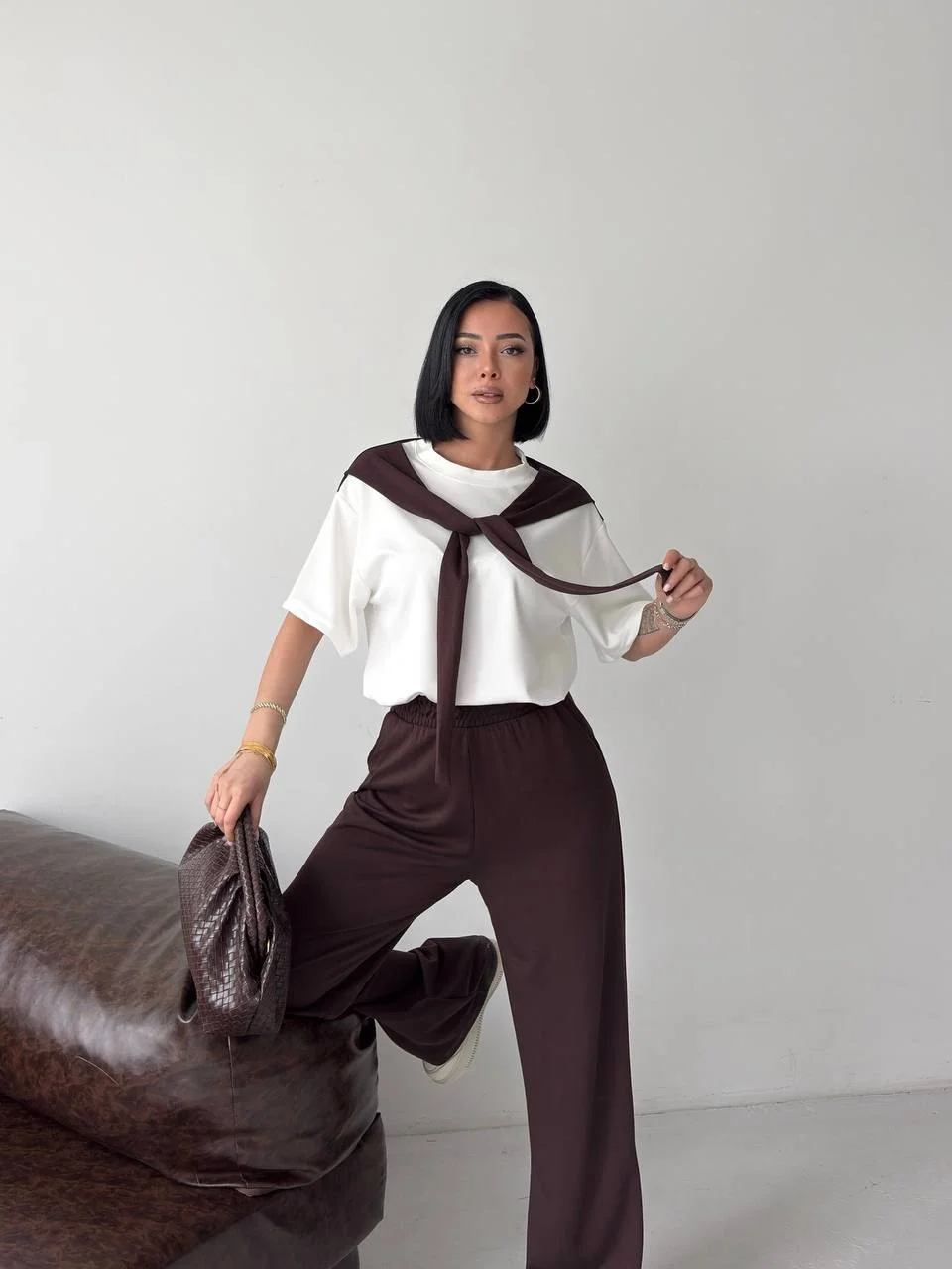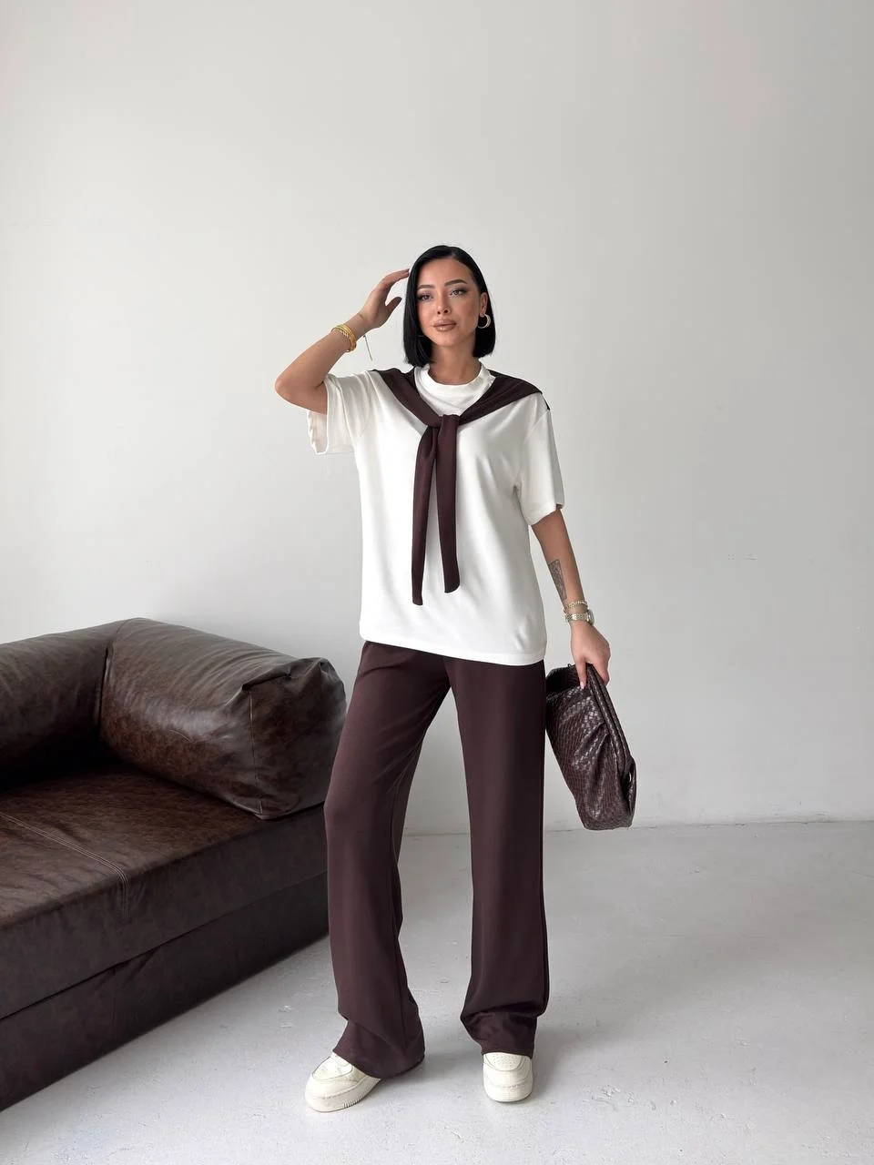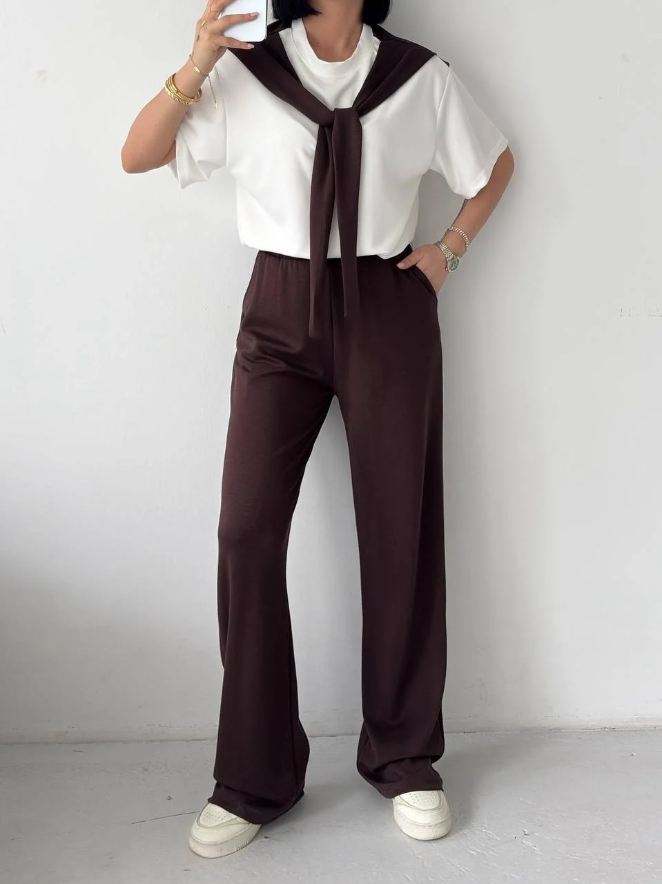 Taba Rahat Takım – Basic Tişört & Yüksek Bel Salaş Pantolon Kombini