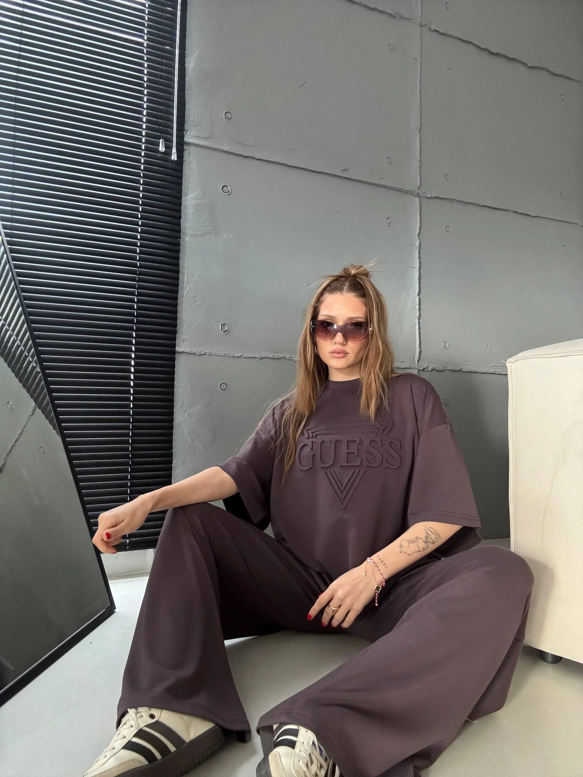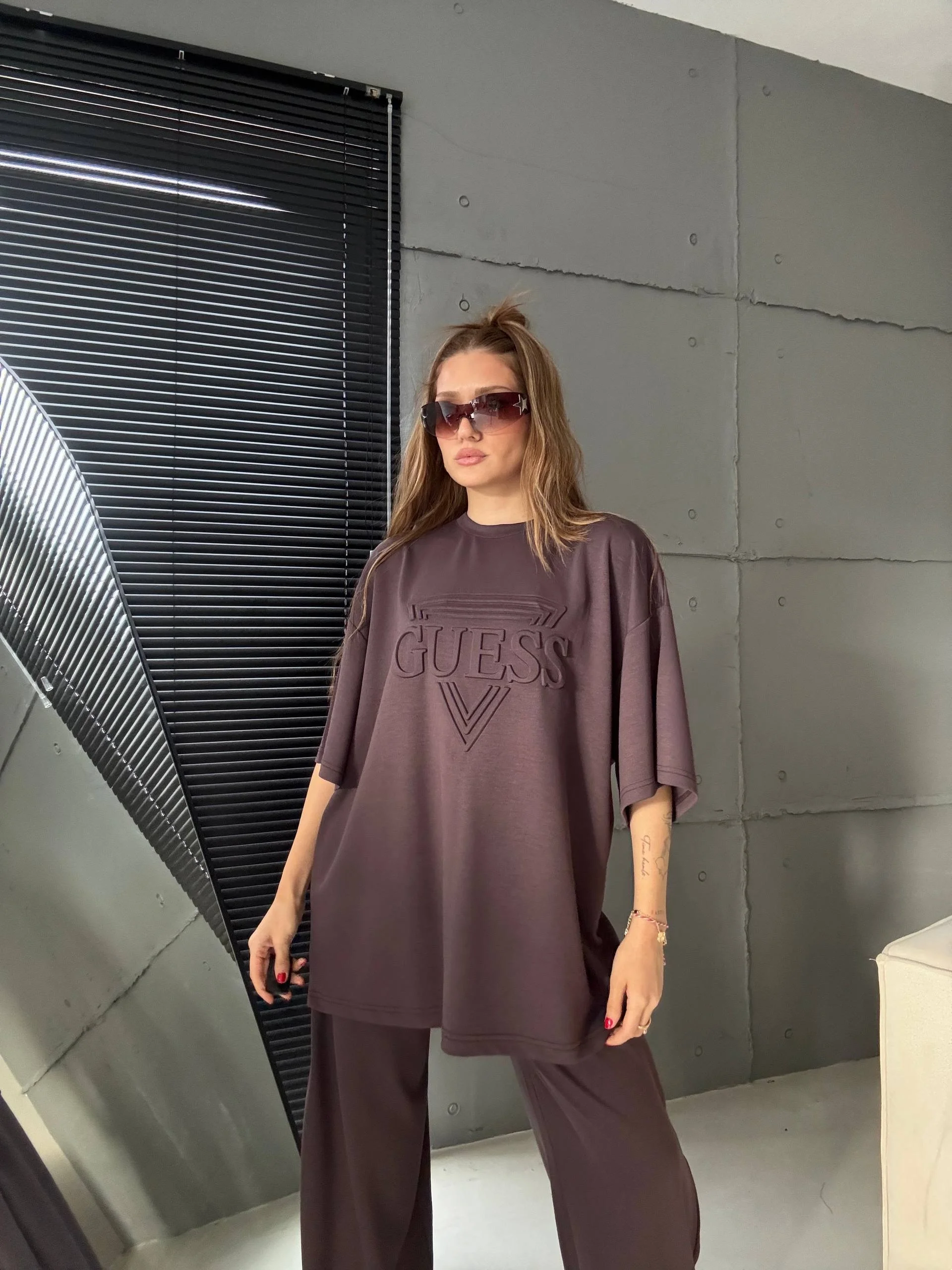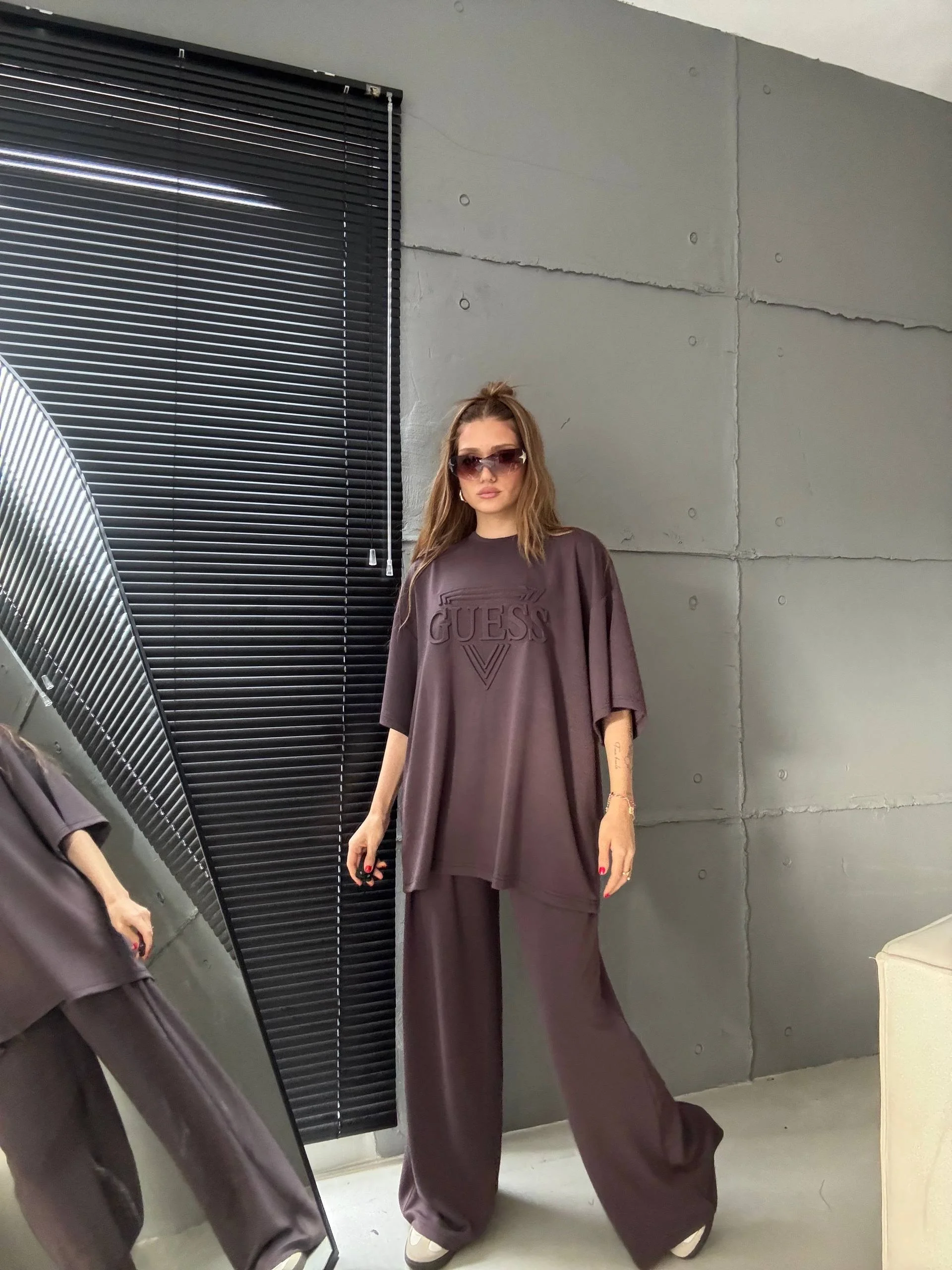 Vizon Oysho Kumaş Oversize Tişört Bol Paça Pantolon Rahat Kesim Takım