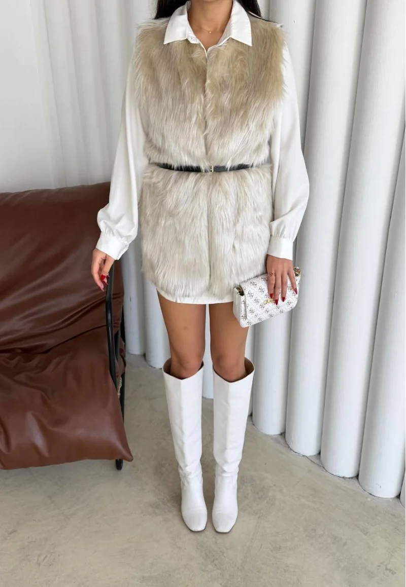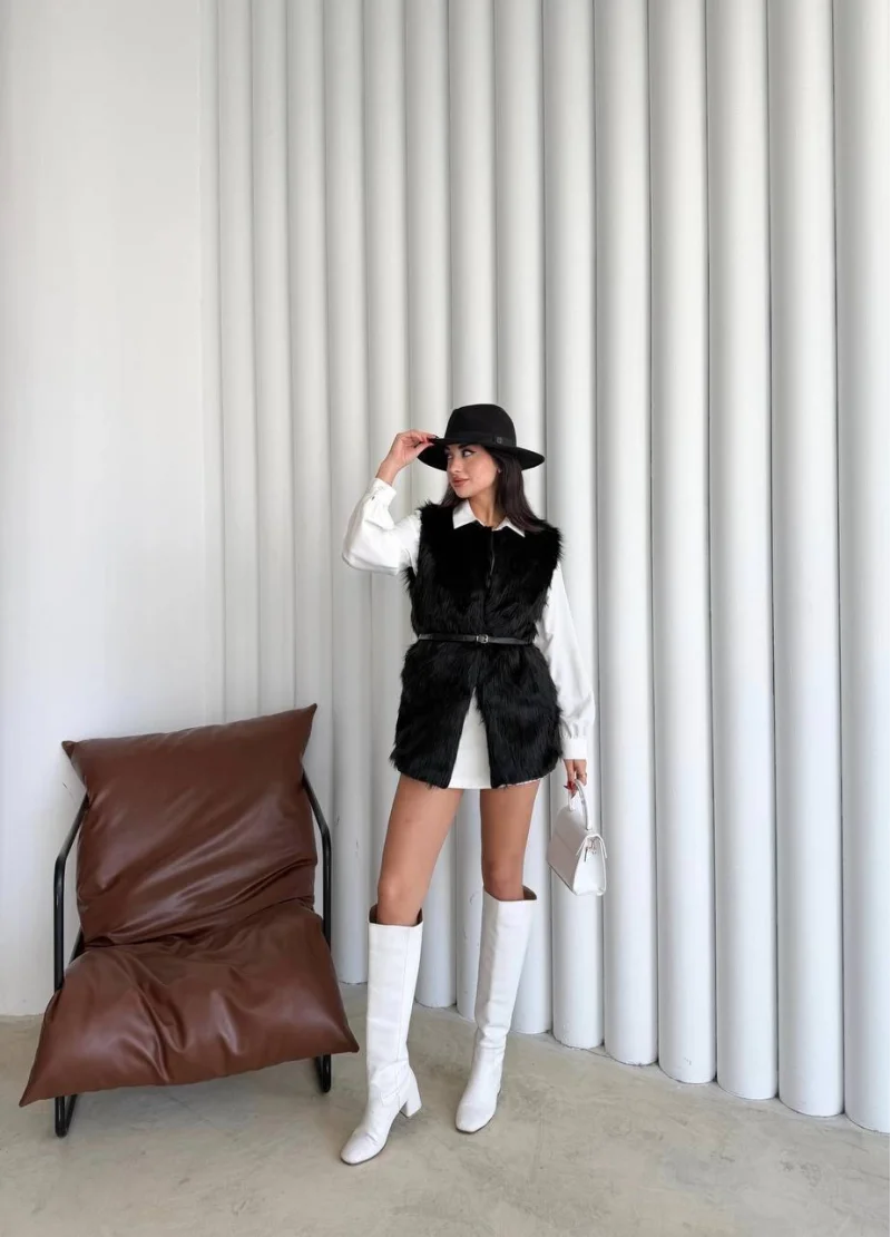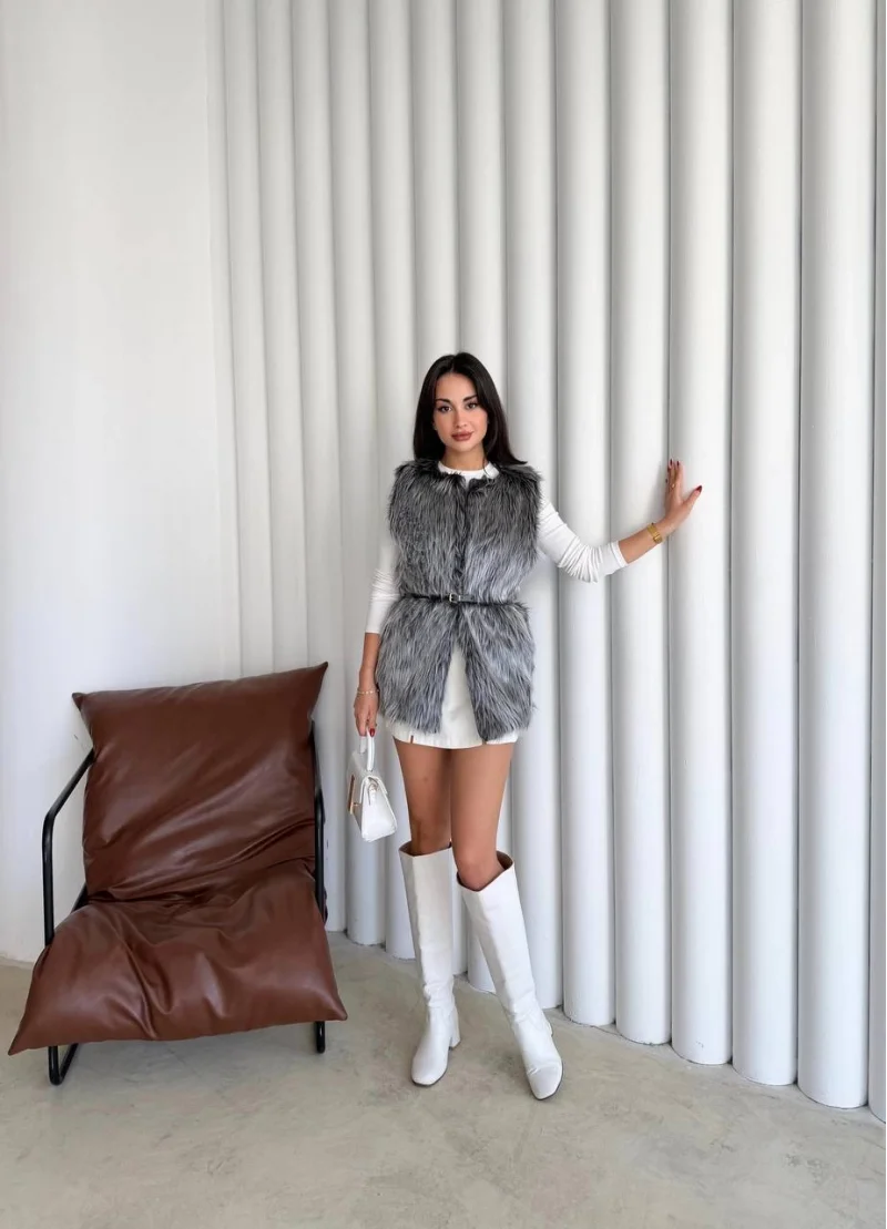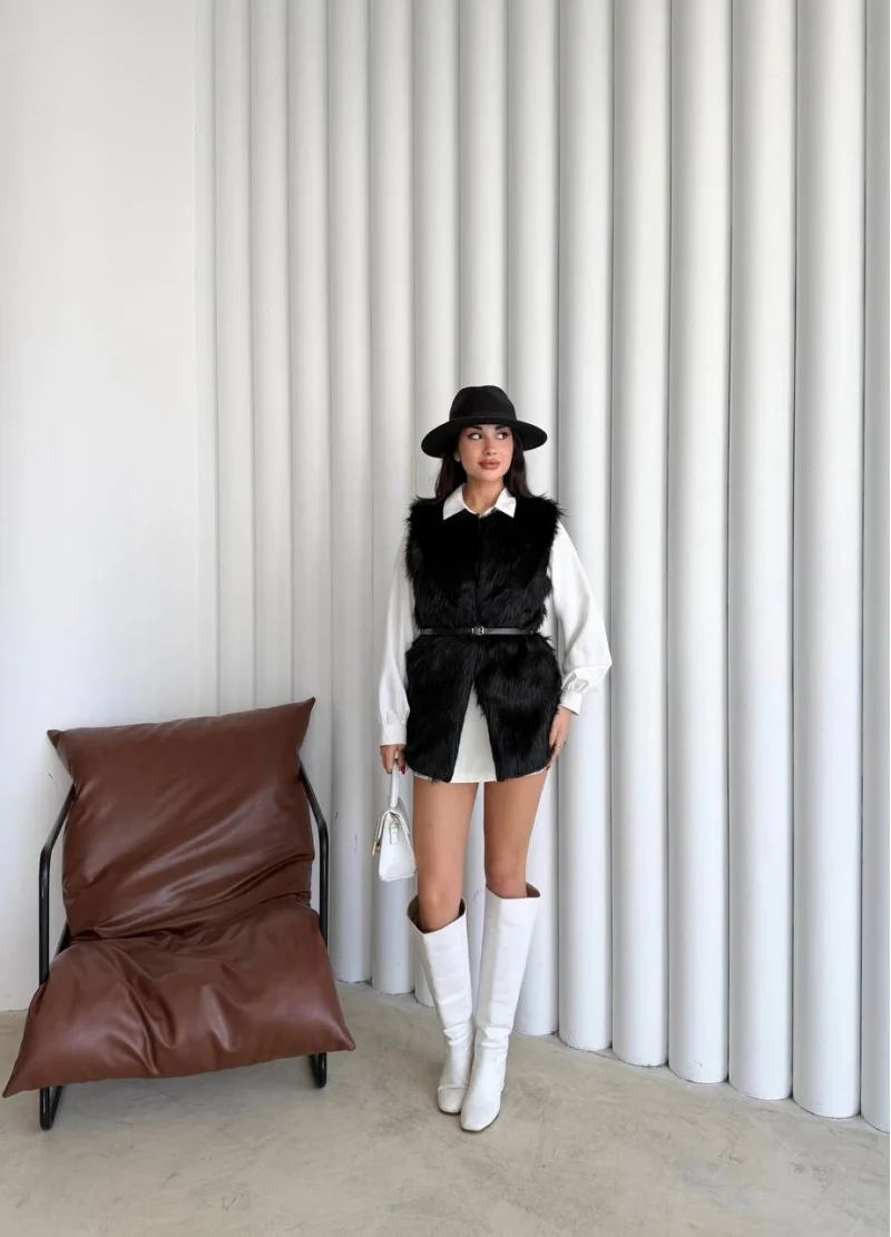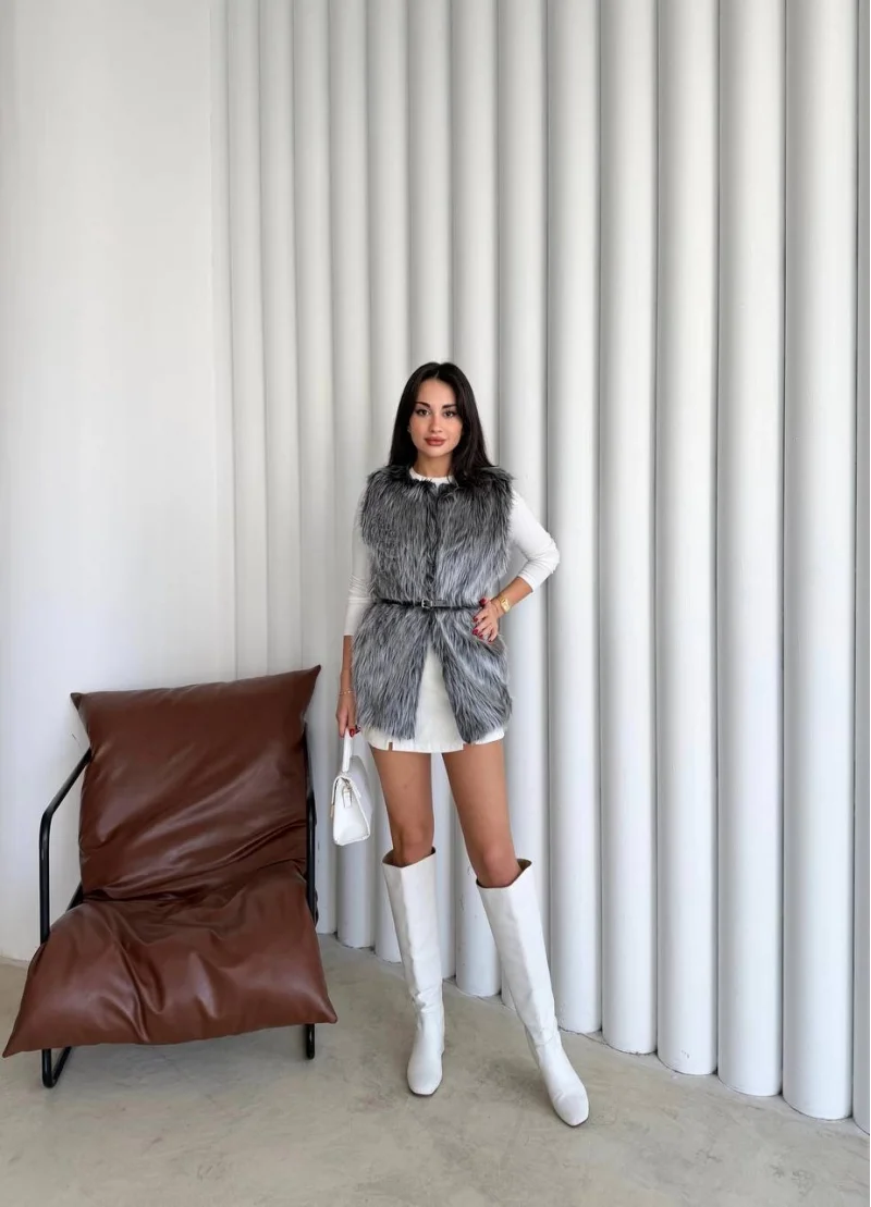 Uzun İçi Kürk Kemerli Yelek