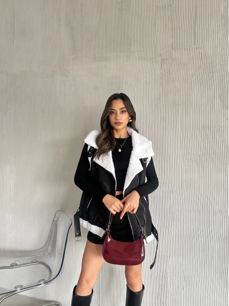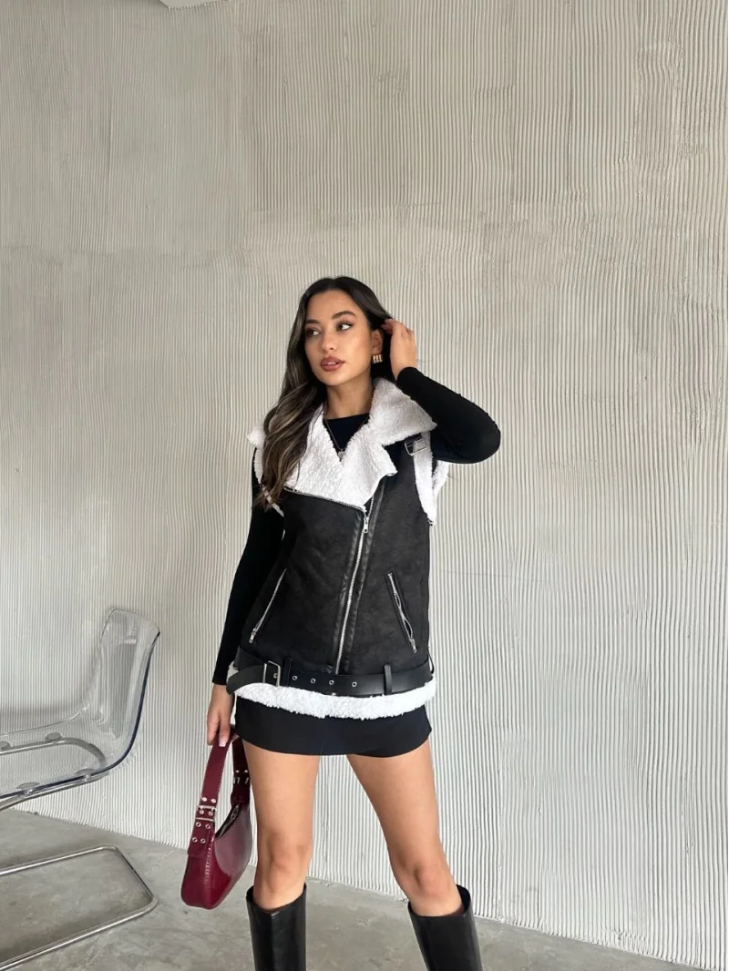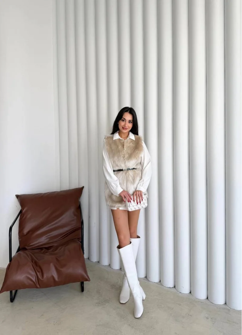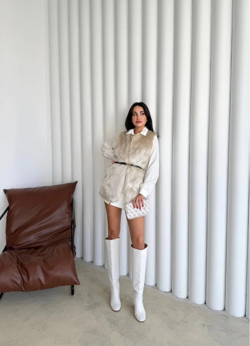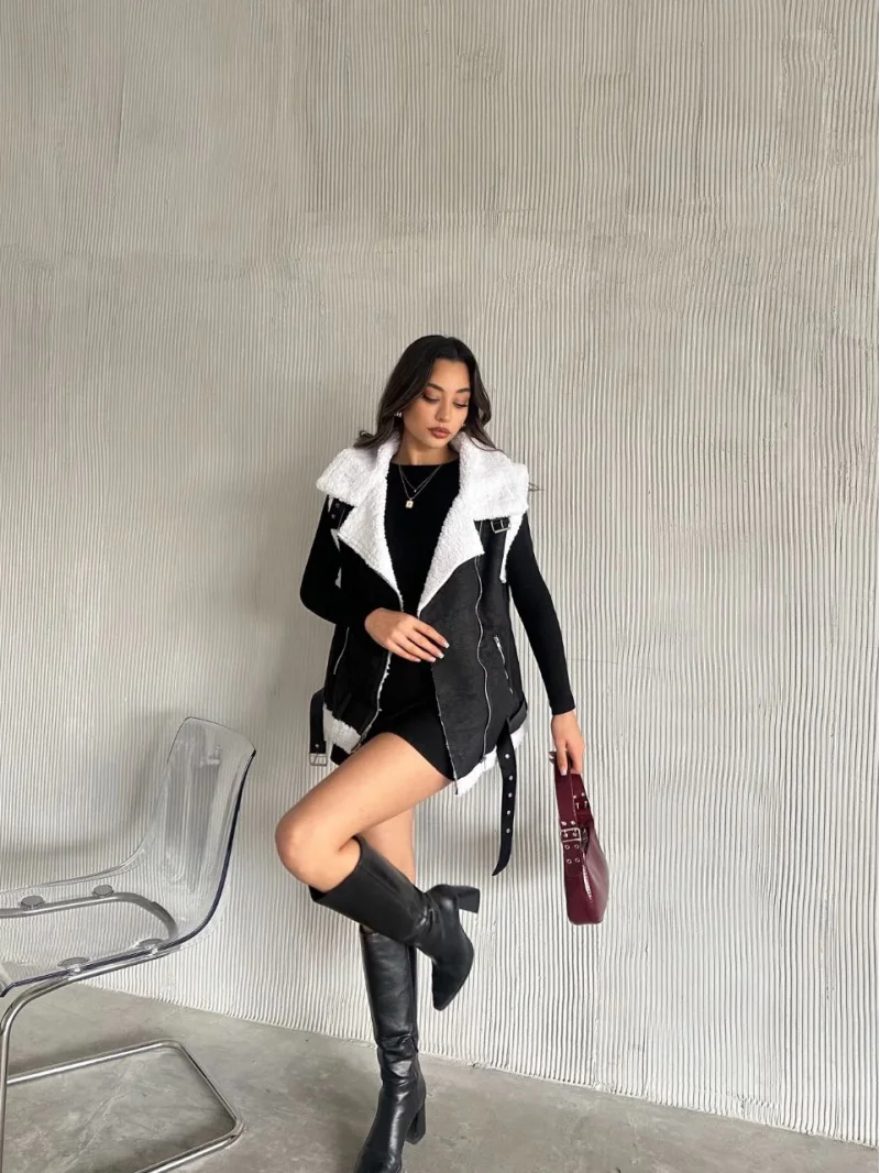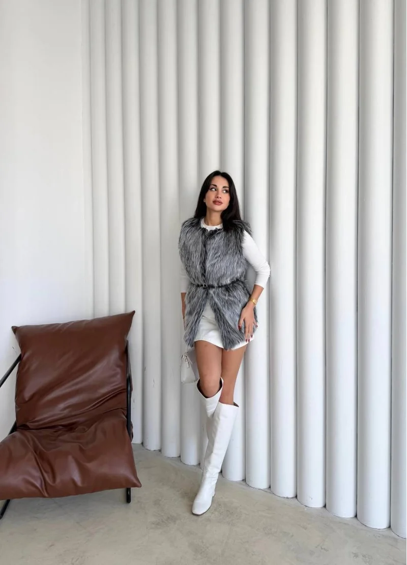 Uzun İçi Kürk Kemerli Yelek